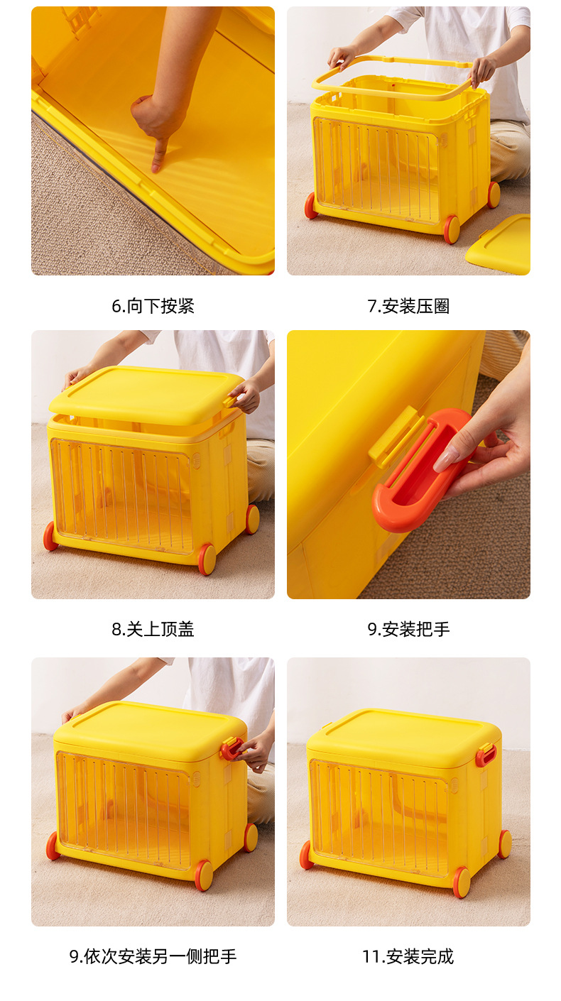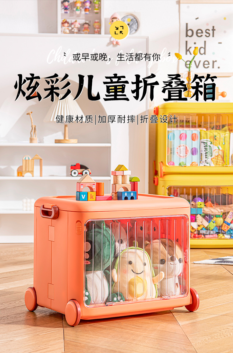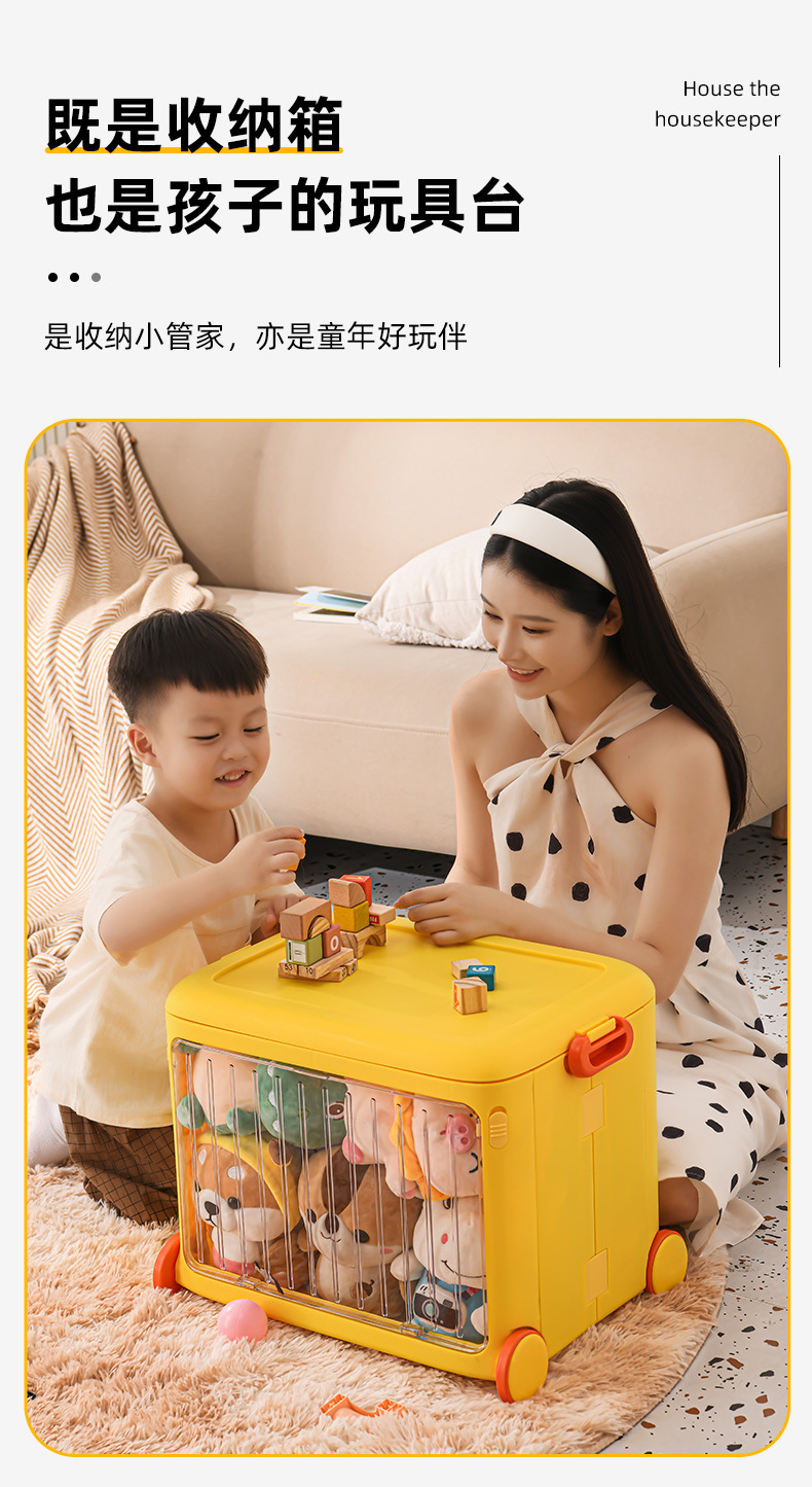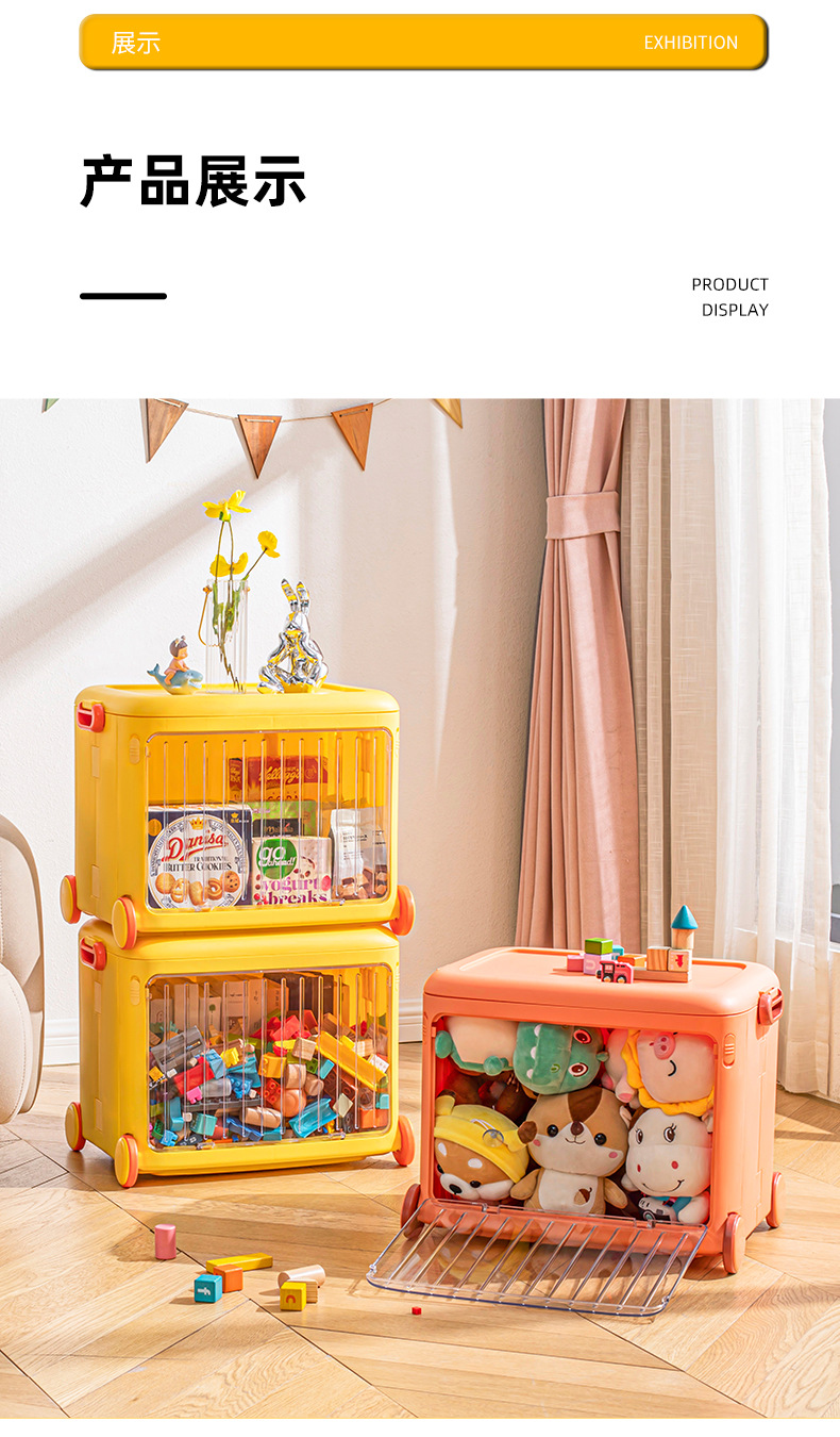 투명한 트롤리 저장 상자를 마무리하는 어린이 장난감 상자 접이식 가구 마감 상자 움직일 수있는 책 간식