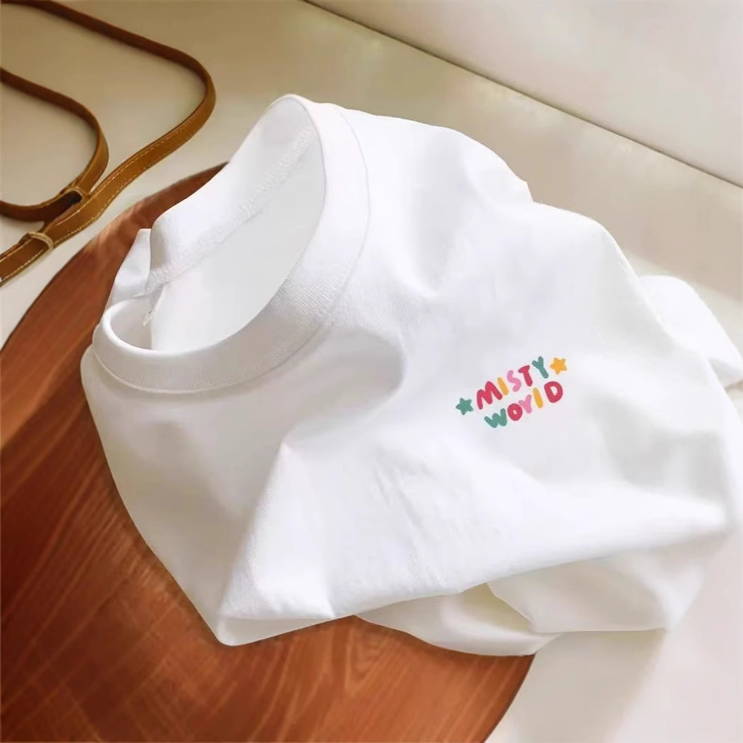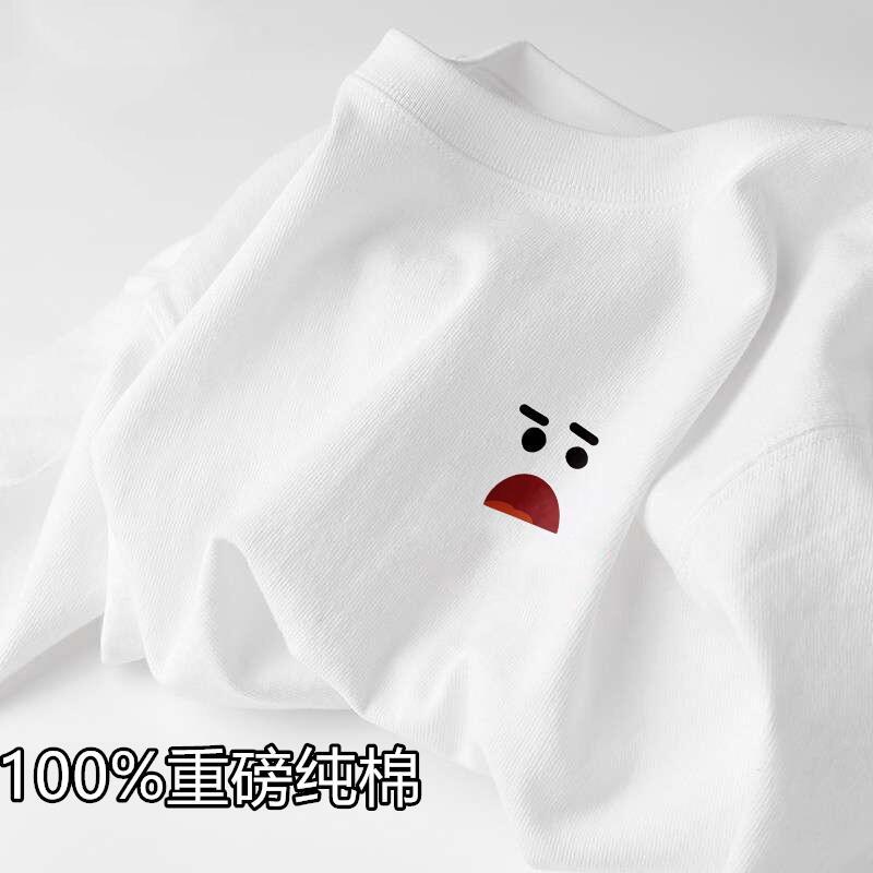 여름 신작 남성과 여성 순면 반팔 심플 화이트 패션 패턴 루즈 티셔츠 남성과 여성 같은 스타일 반팔 트렌드스토어 가기