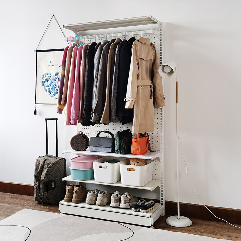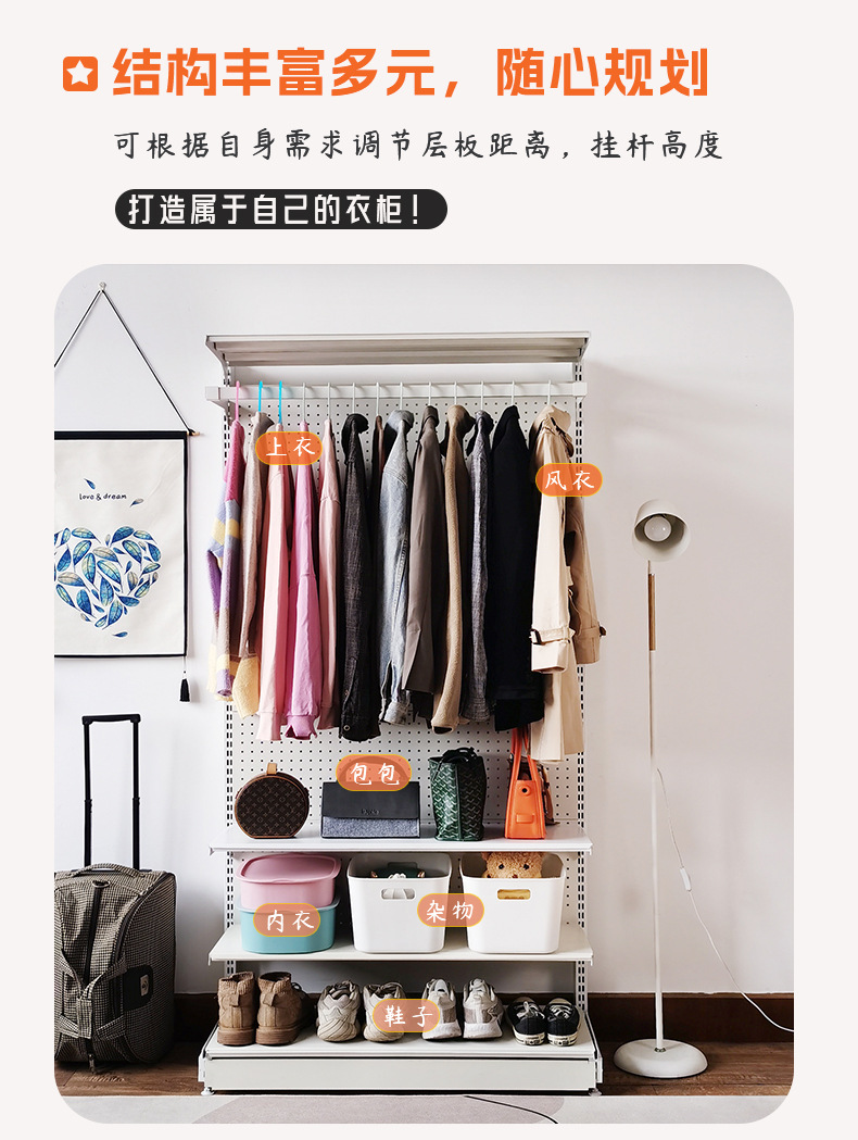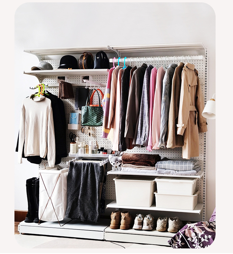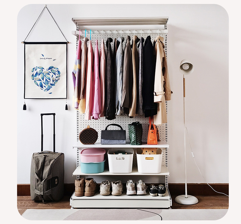 J^홀 보드 오픈 옷장 포름알데히드가 없는 현대적인 단순한 작은 아파트 쉽게 분해 및 조립 가능한 금속 코트스토어 가기
