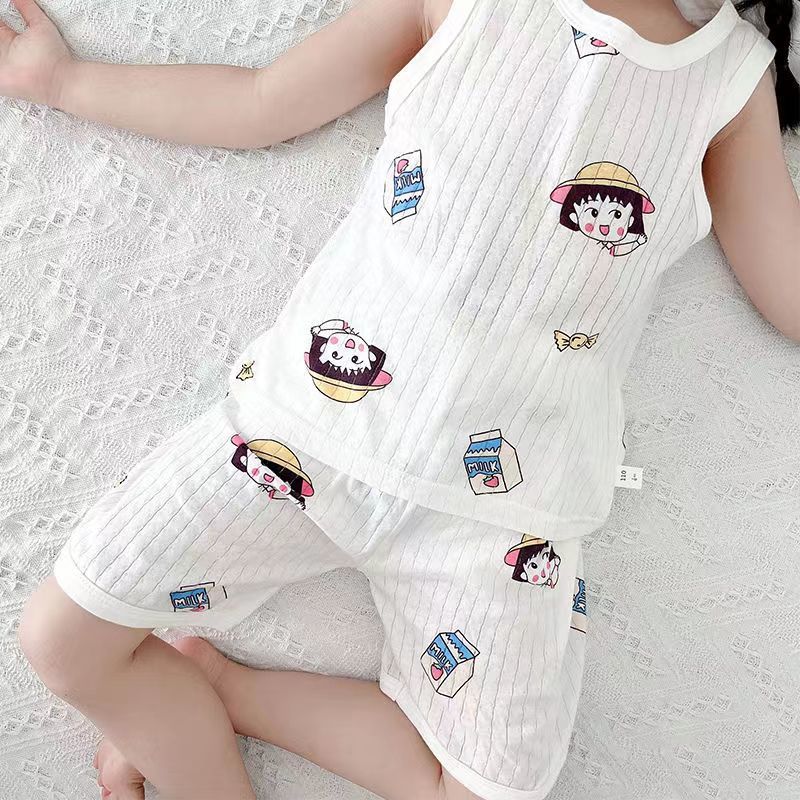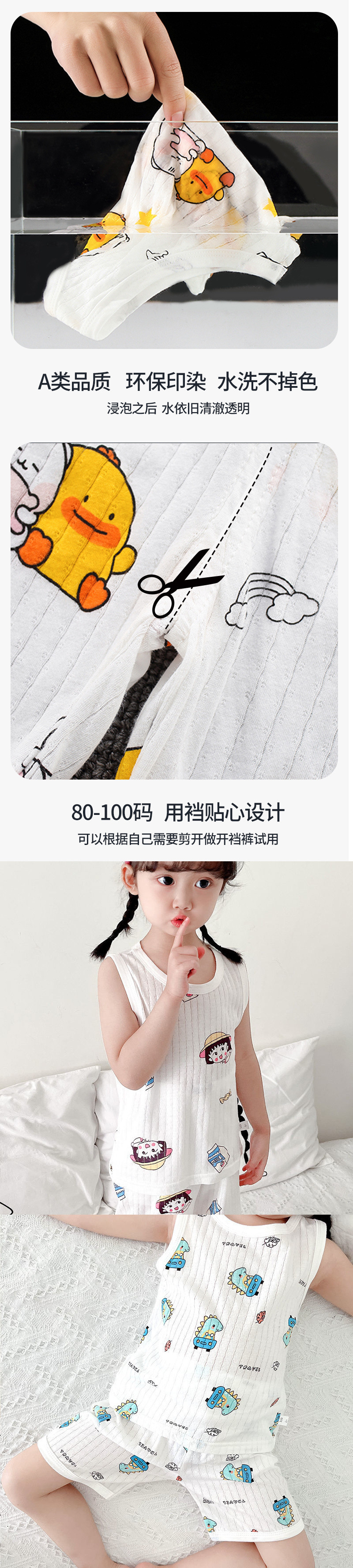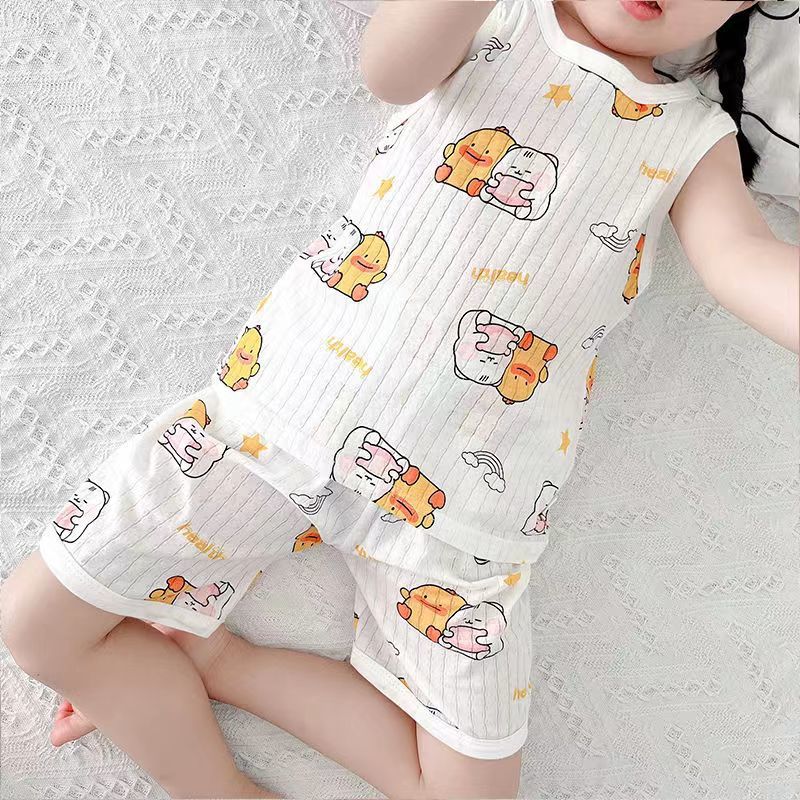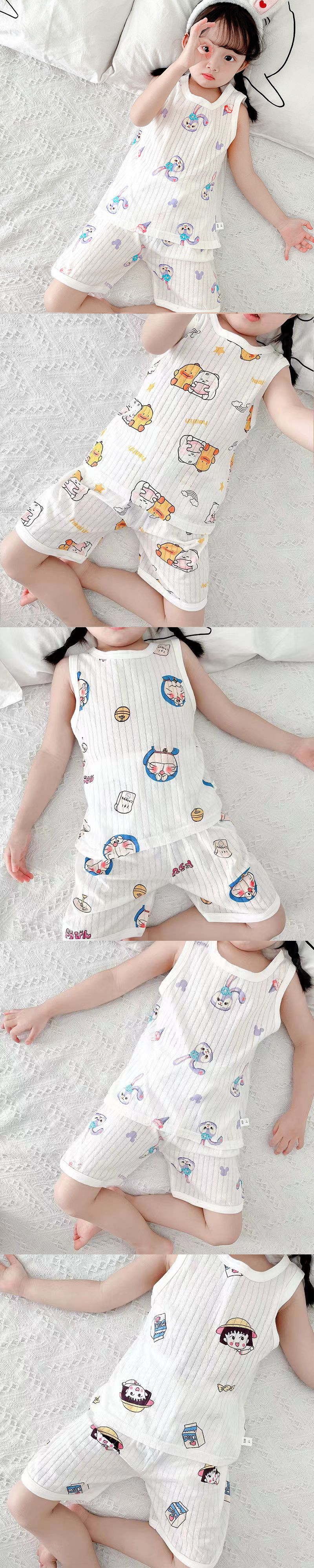 어린이 조끼 세트 클래스 A 순수 코튼 홈 의류 세트 만화 빗질면 소년과 소녀 민소매 조끼 반바지스토어 가기