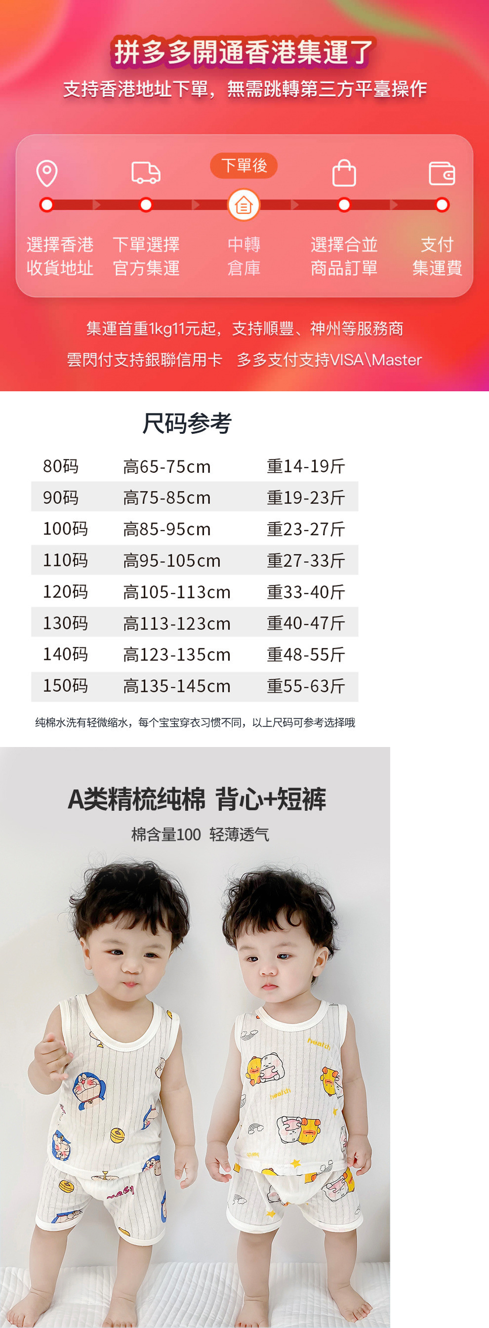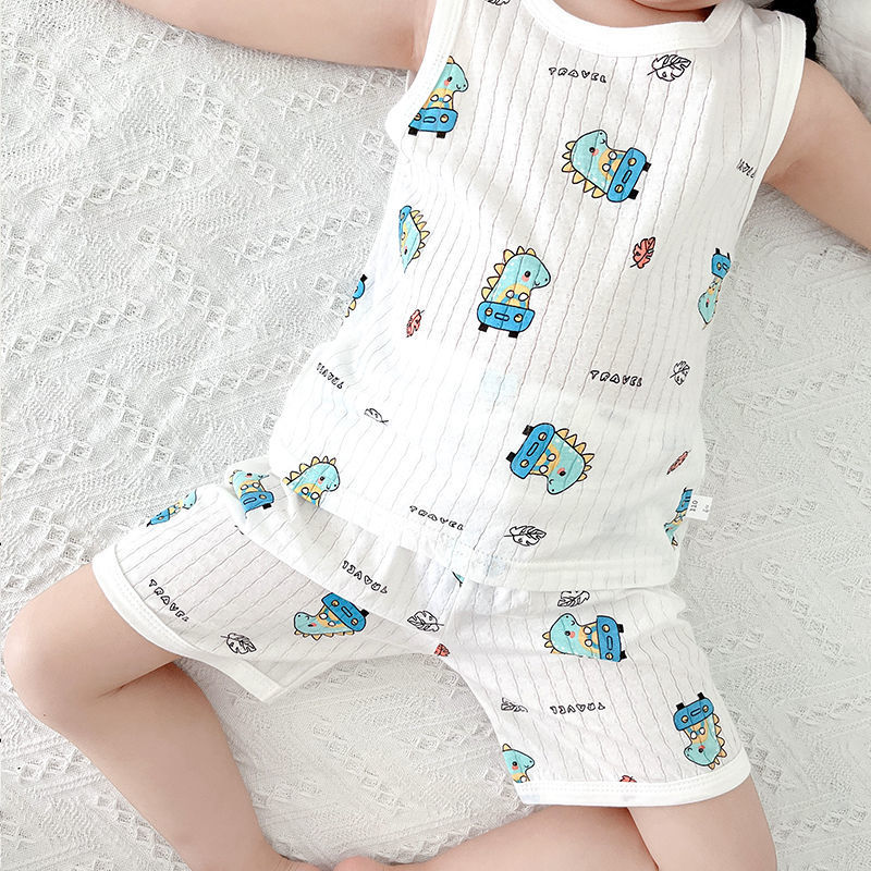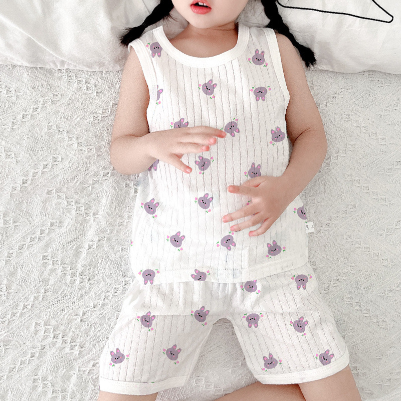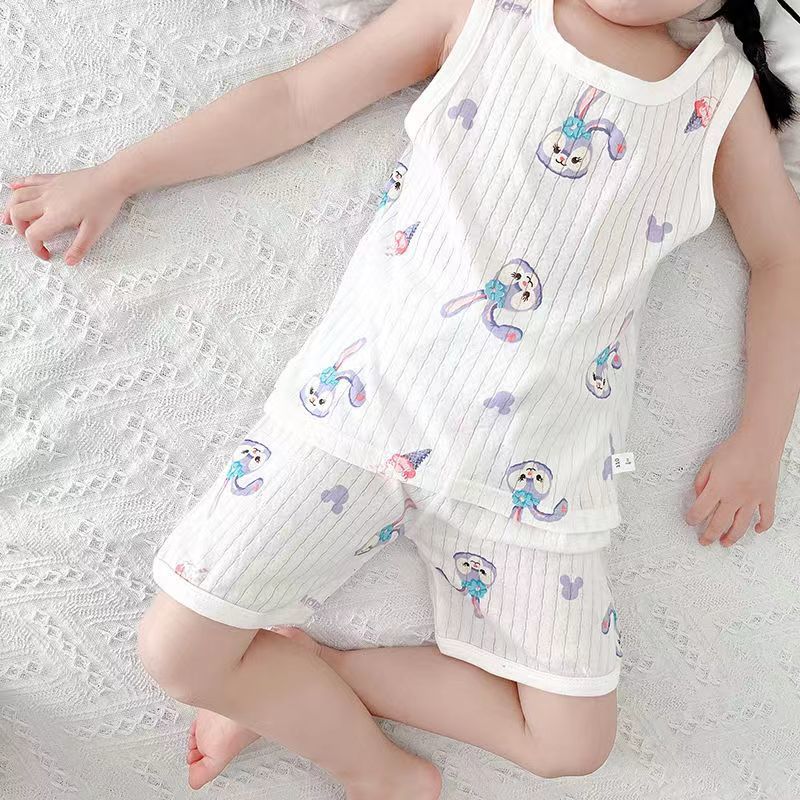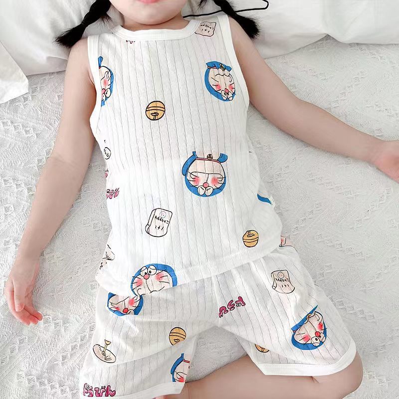 어린이 조끼 세트 클래스 A 순수 코튼 홈 의류 세트 만화 빗질면 소년과 소녀 민소매 조끼 반바지스토어 가기