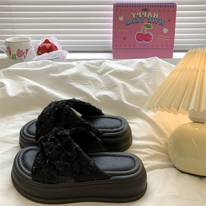 블랙 플랫폼 슬리퍼 여성 여름 아우터 2025 새로운 유행 올 매치 높이 증가 스커트 비치 슬리퍼스토어 가기