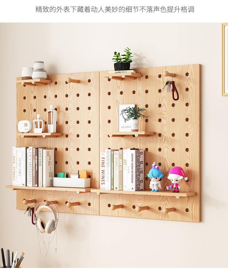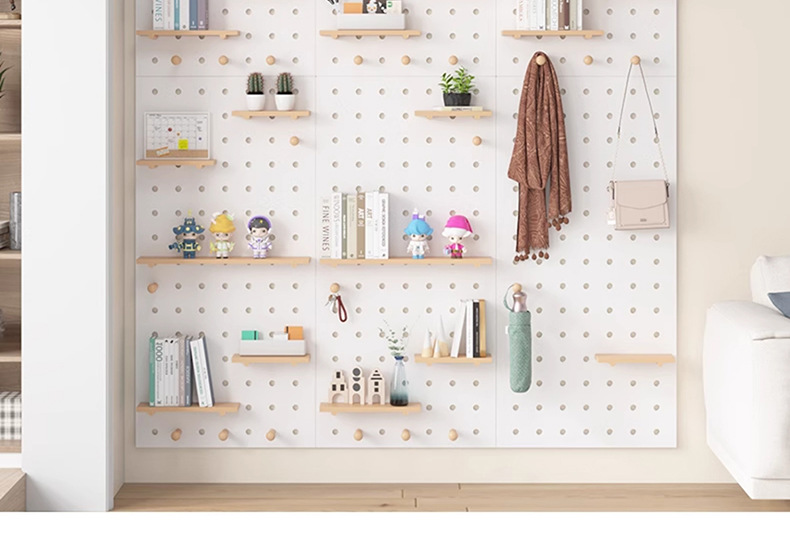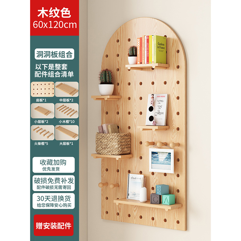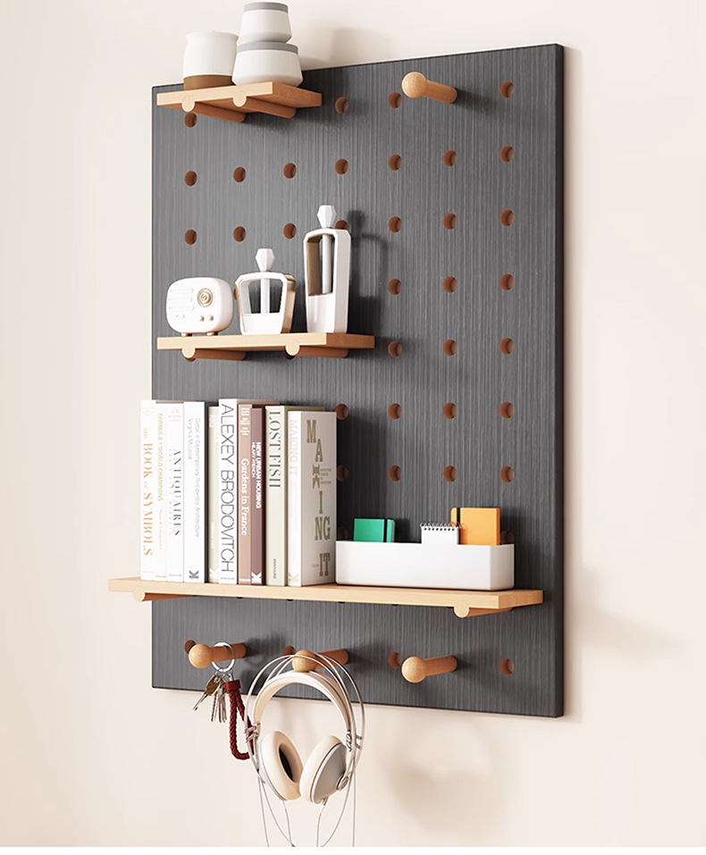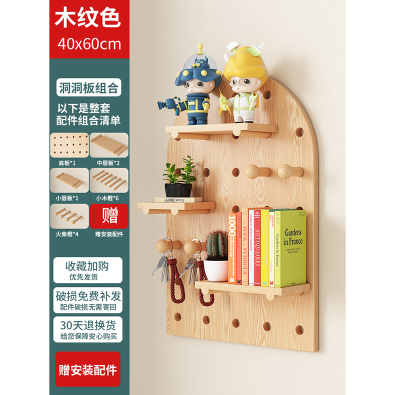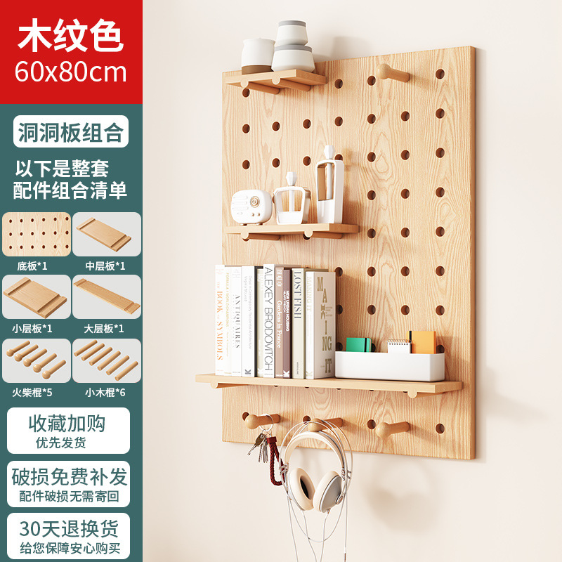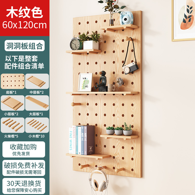 단단한 나무 구멍 보드 보관 랙 벽걸이 보드 벽 나무 입구 문 벽 디스플레이 보관 랙