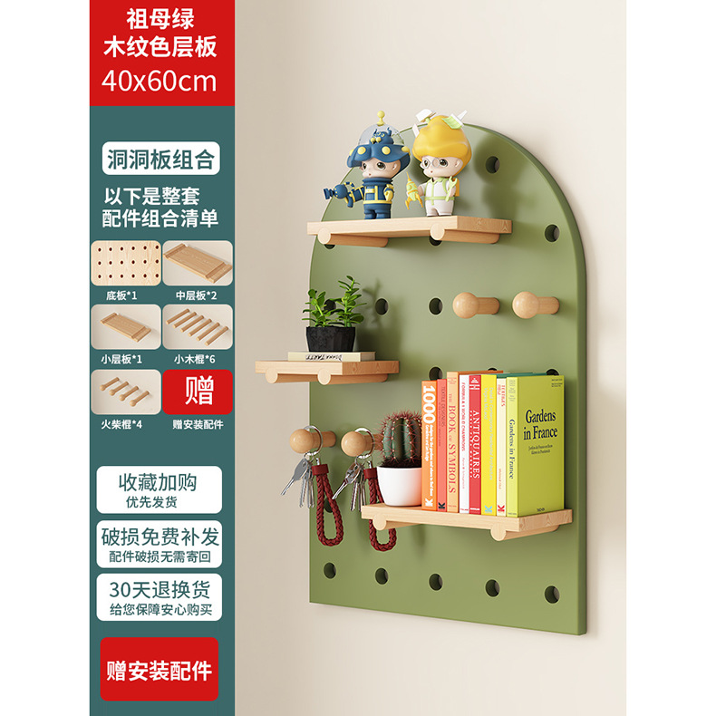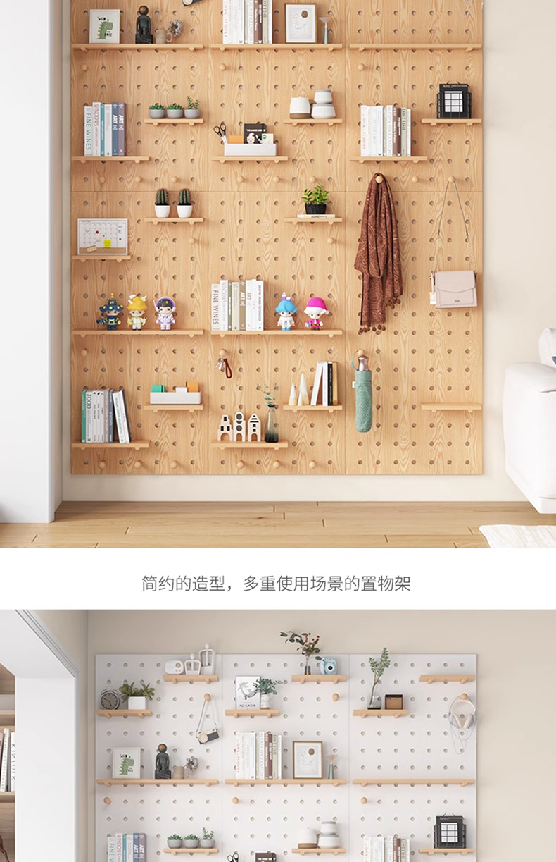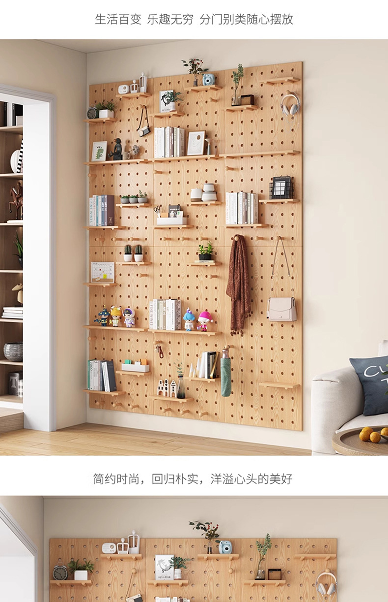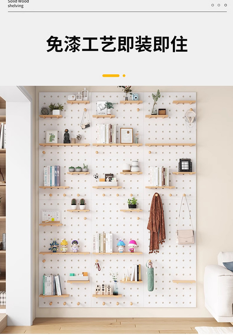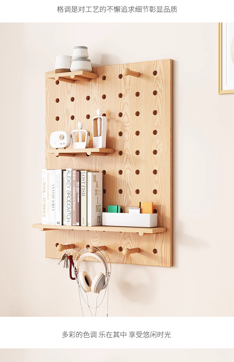 단단한 나무 구멍 보드 보관 랙 벽걸이 보드 벽 나무 입구 문 벽 디스플레이 보관 랙