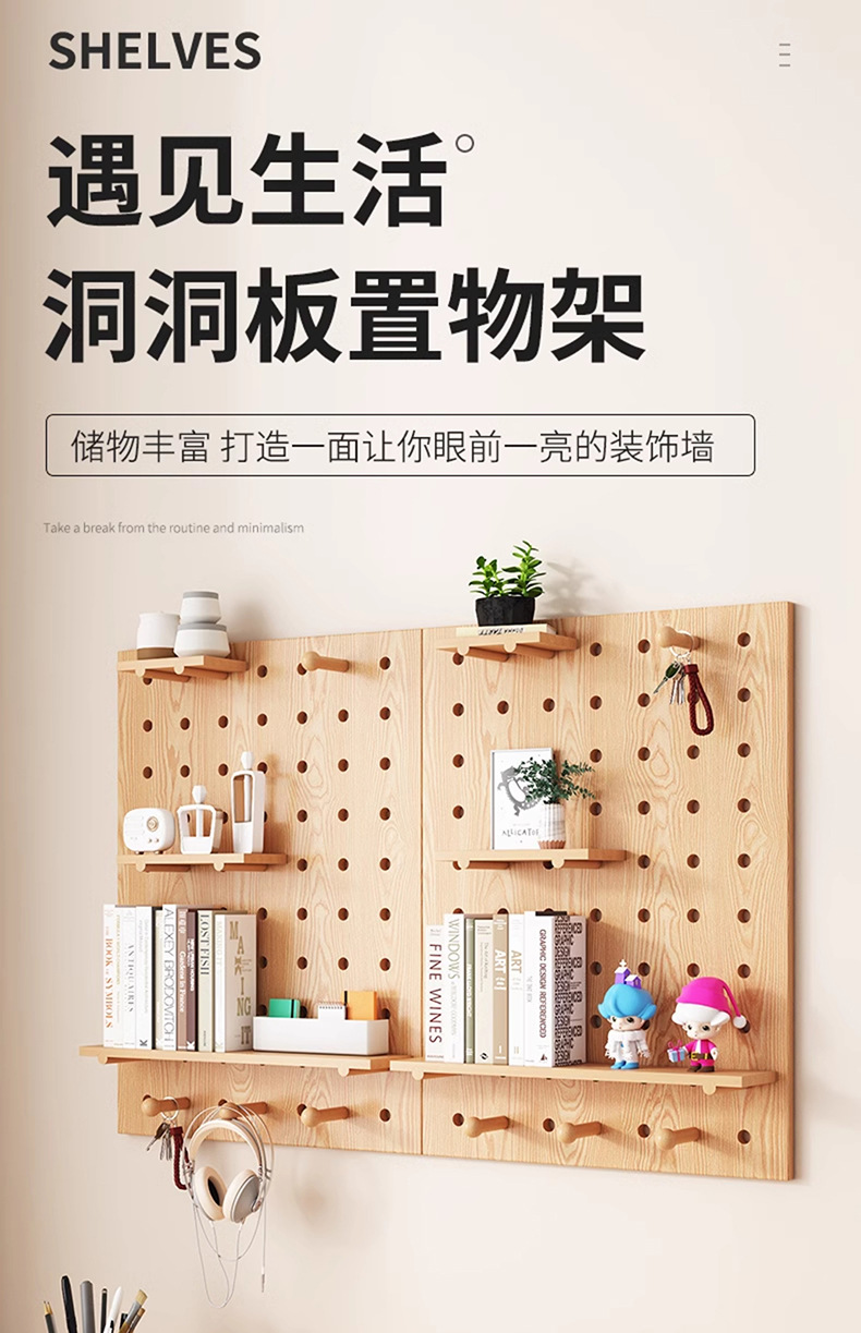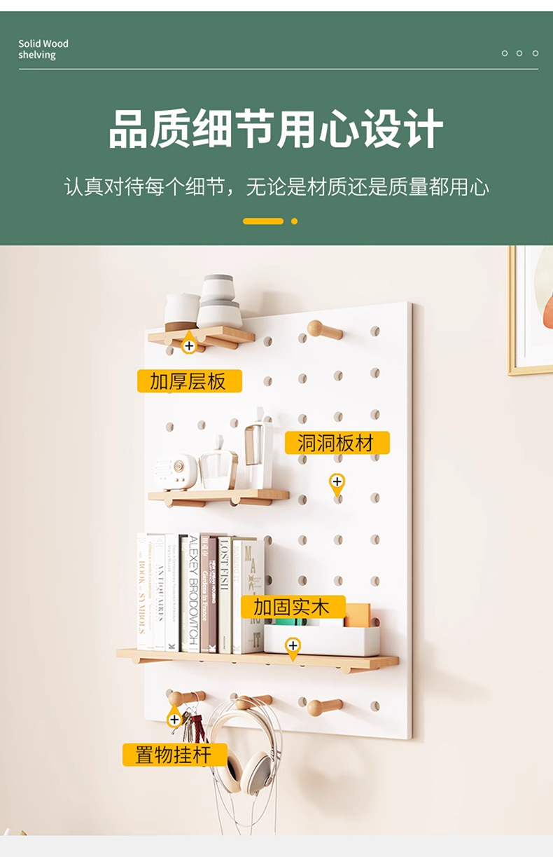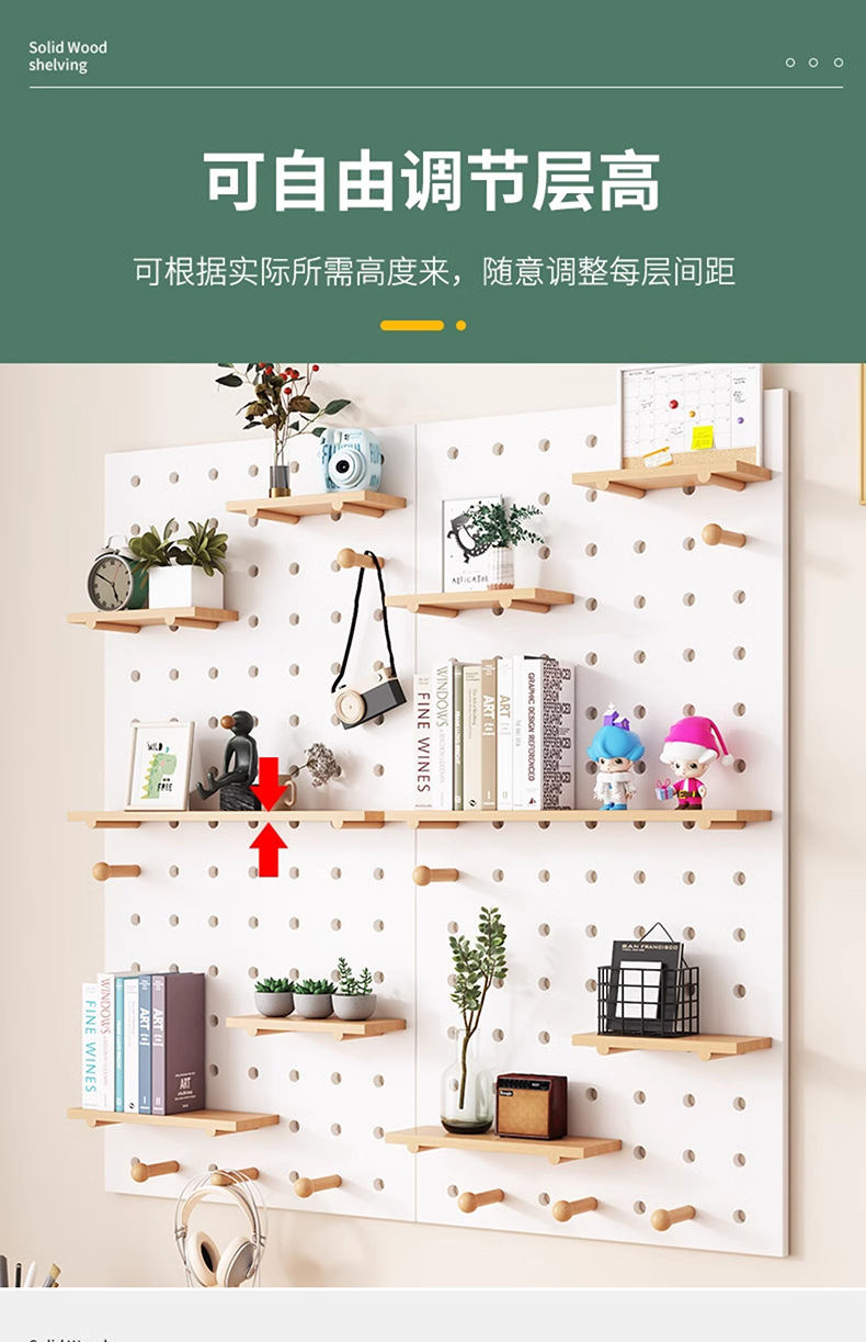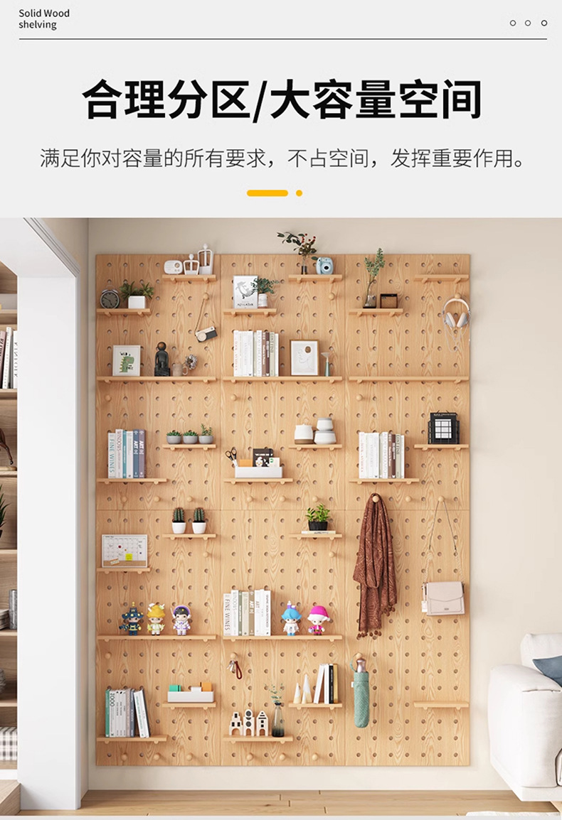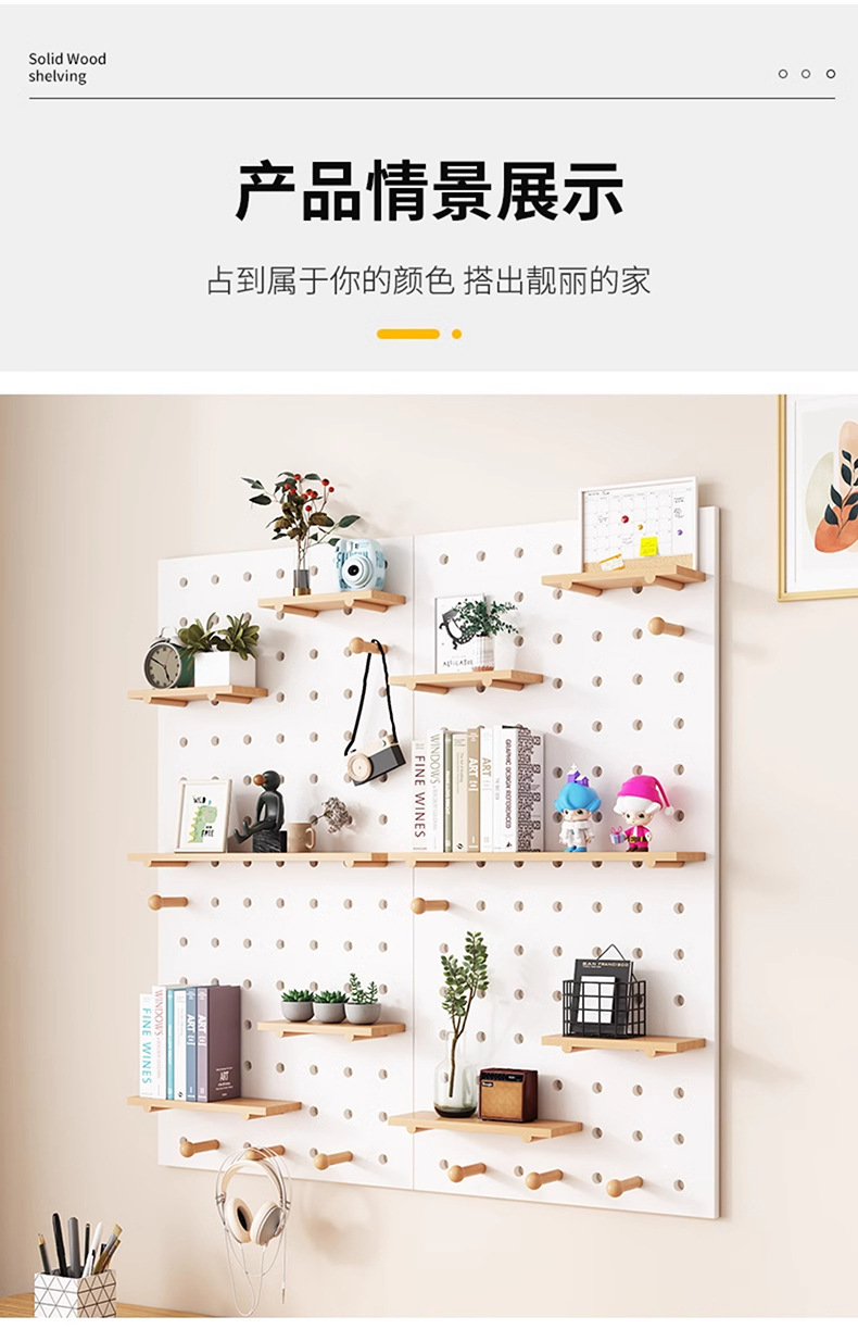 단단한 나무 구멍 보드 보관 랙 벽걸이 보드 벽 나무 입구 문 벽 디스플레이 보관 랙