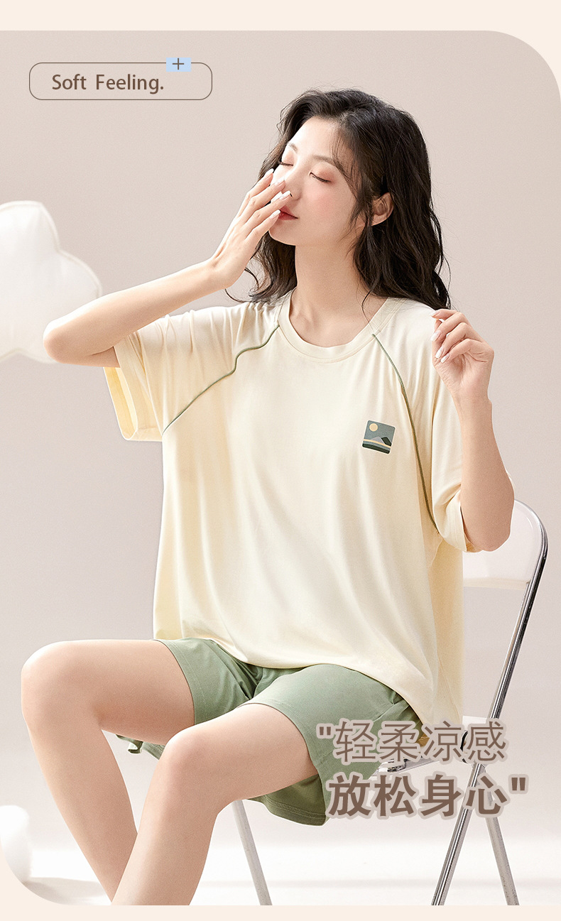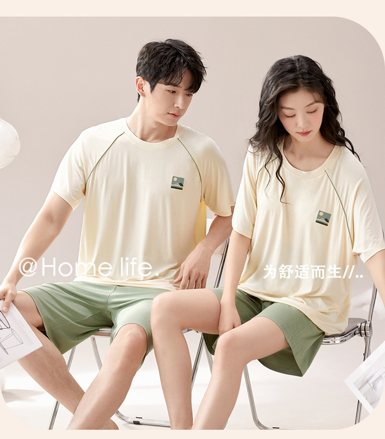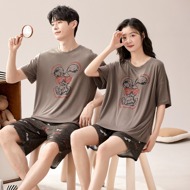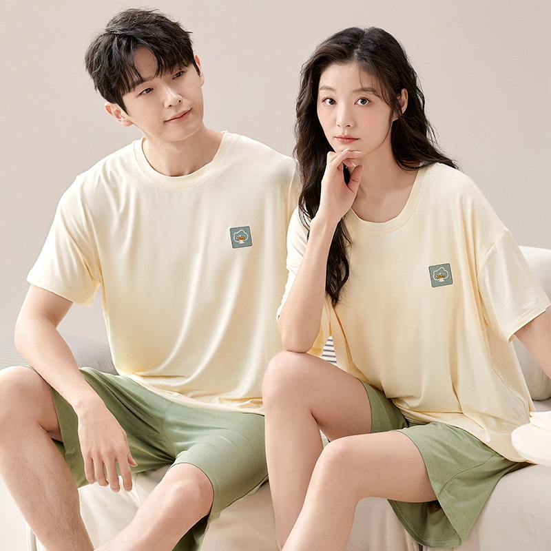 가슴 패드가 있는 모달 코튼 커플 잠옷, 아이스 실크 반팔 여름 잠옷, 반바지, 얇은 남성 및 여성 홈웨어스토어 가기