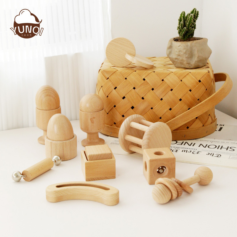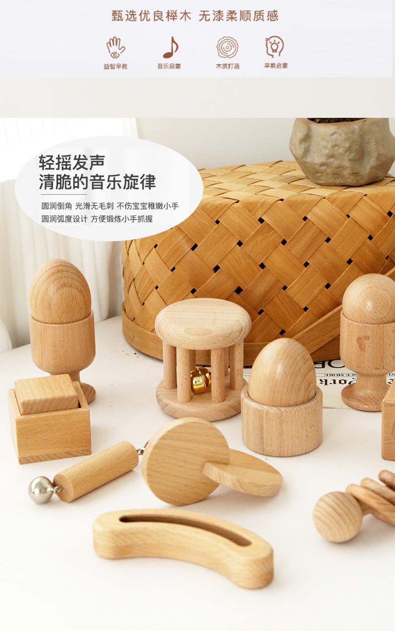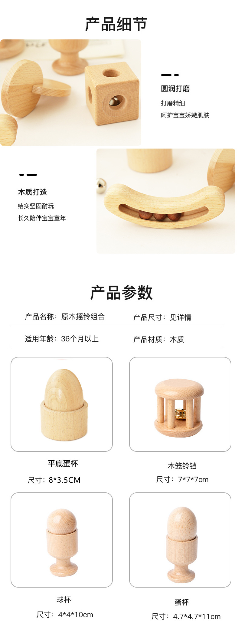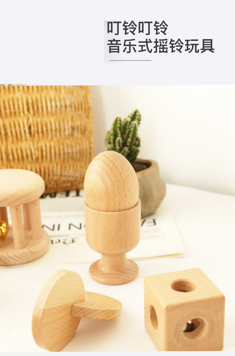 1-3 세 몬테소리 조기 교육 장난감 나무 계란 컵 딸랑이 신생아 유아 조합 세트 남성과 여성을위한 너도밤 나무 그립스토어 가기