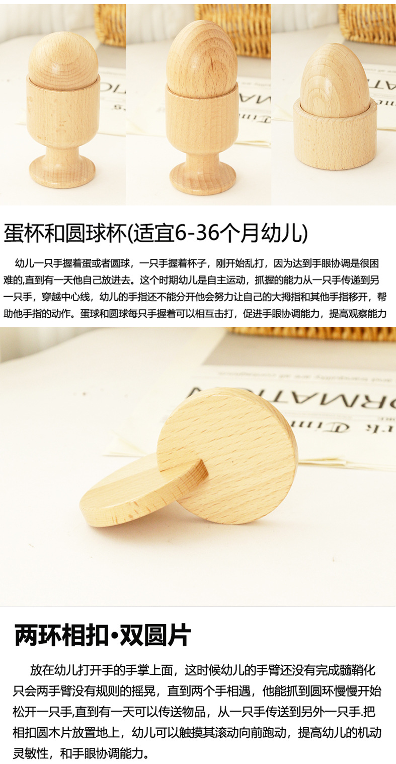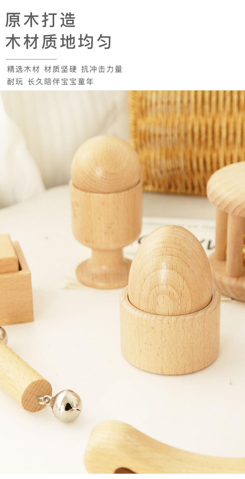 1-3 세 몬테소리 조기 교육 장난감 나무 계란 컵 딸랑이 신생아 유아 조합 세트 남성과 여성을위한 너도밤 나무 그립