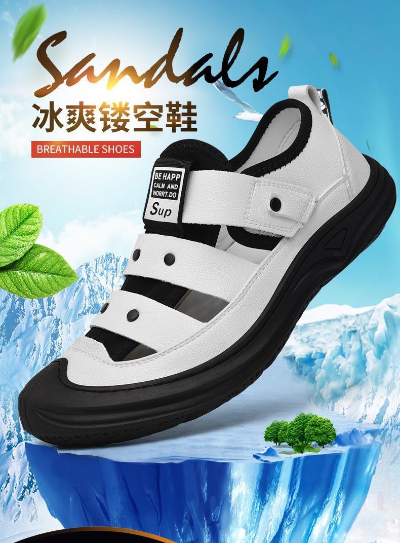 Cangnan County Longdu 여름 패션 중공 구멍 신발 여름 신작 남성 비치 샌들 통기성 캐주얼 가죽 신발스토어 가기