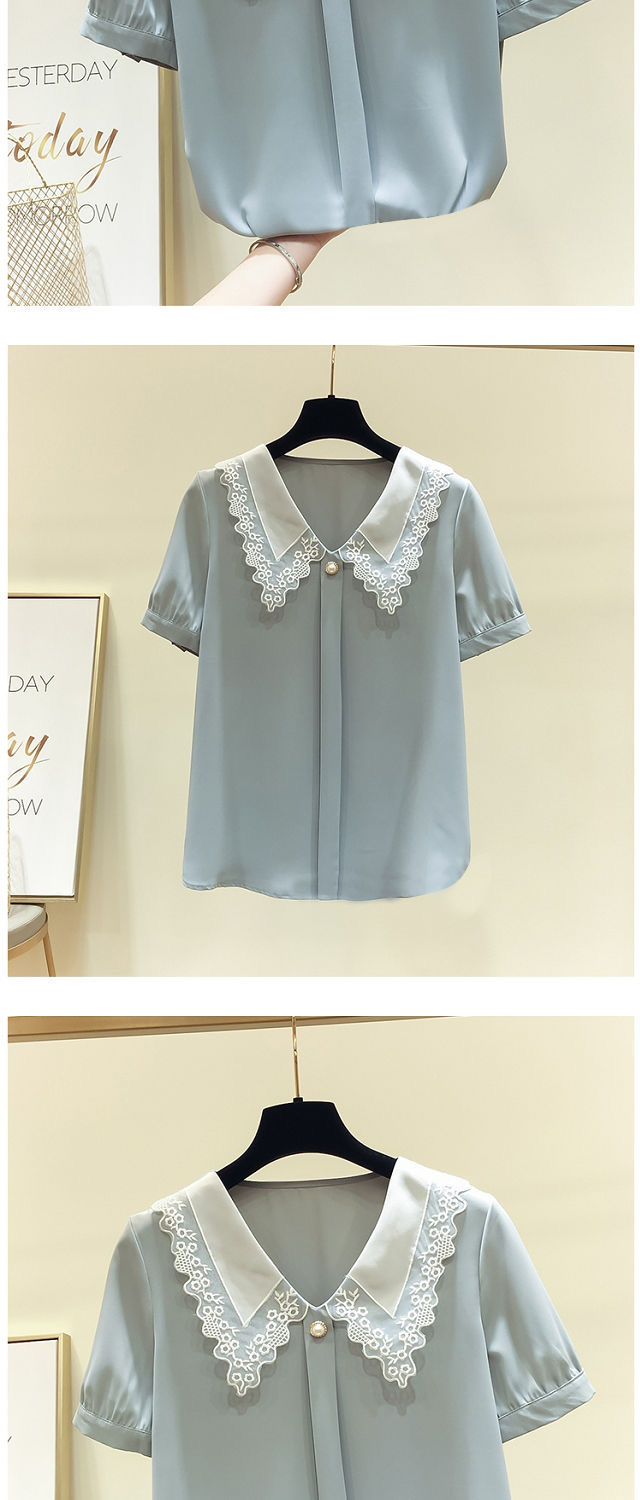시폰 셔츠 여성 반팔 2024 여름 새로운 한국 스타일 하이 엔드 느슨한 슬리밍 인형 칼라 스위트 스타일 트렌디 작은 셔츠스토어 가기