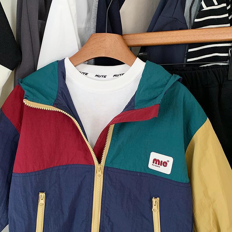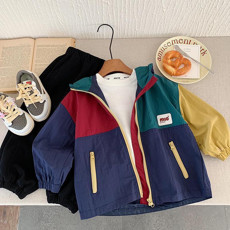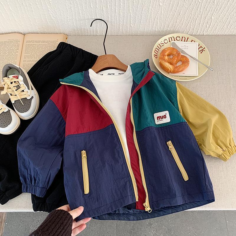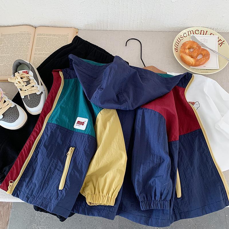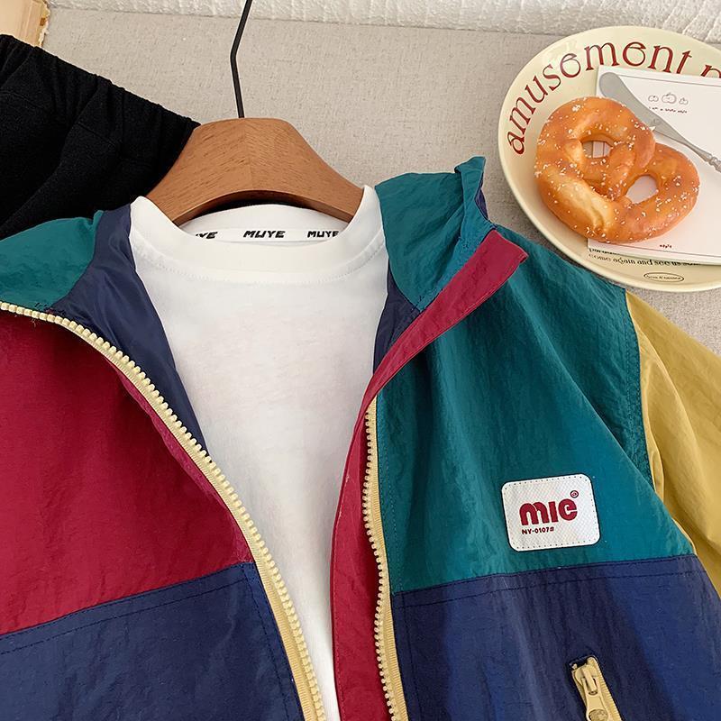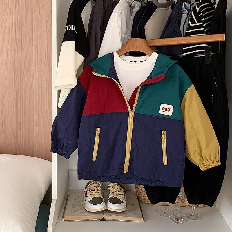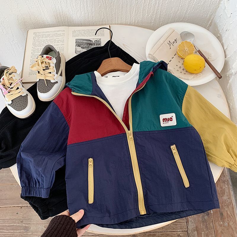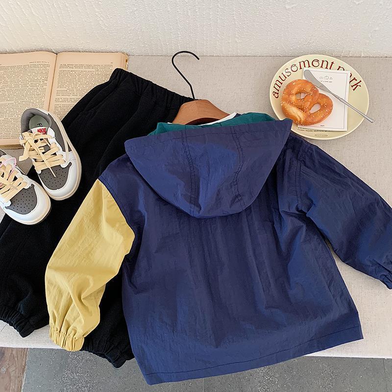 아동용 후드 재킷 2025 봄, 가을 새로운 대비 색 재킷 소년과 소녀 컬러 블록 재킷 베이비 탑스토어 가기