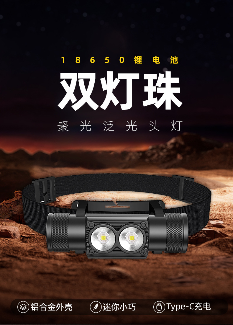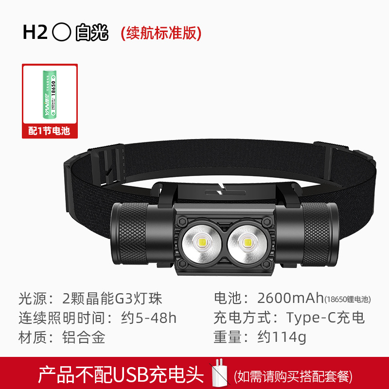 • H2(백색광): 듀얼 광원 - Type-C 충전 - 2600 리튬 배터리