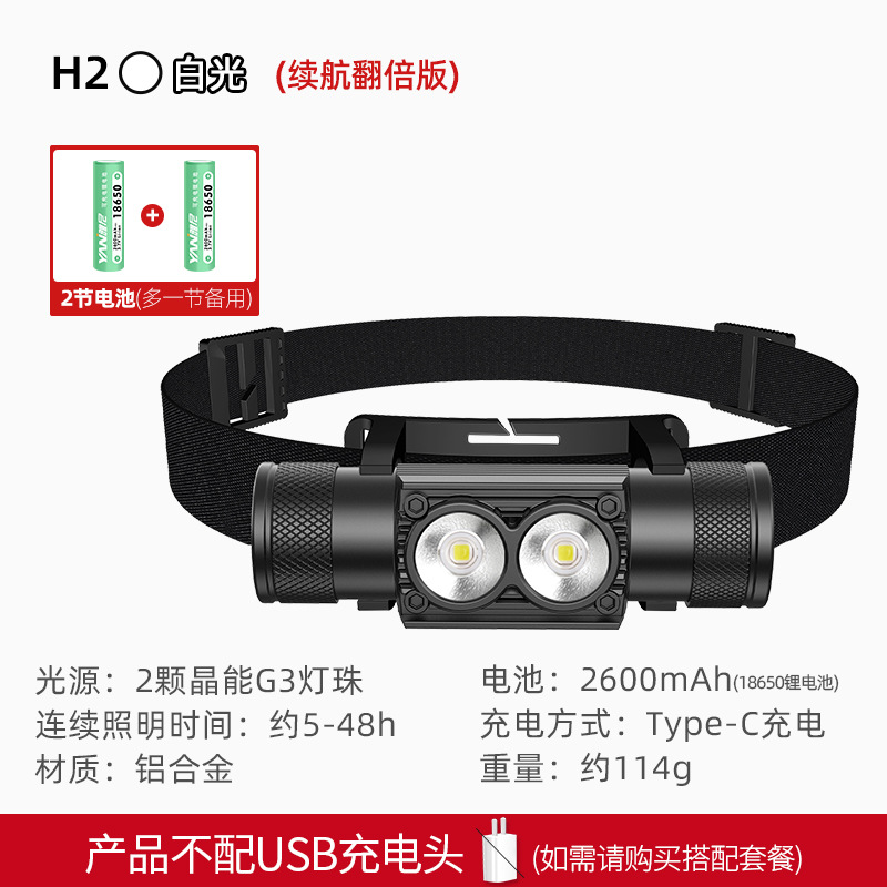 Yanni H2 헤드라이트 강한 빛 충전 초고휘도 헤드 장착형 손전등 조명 낚시 야외 등산 및 하이킹