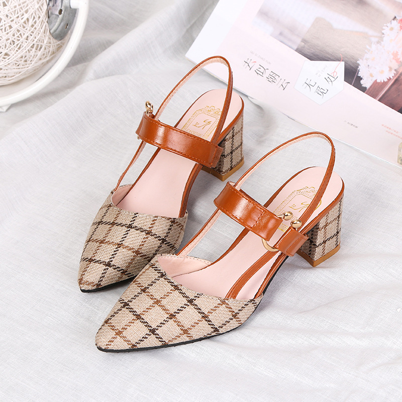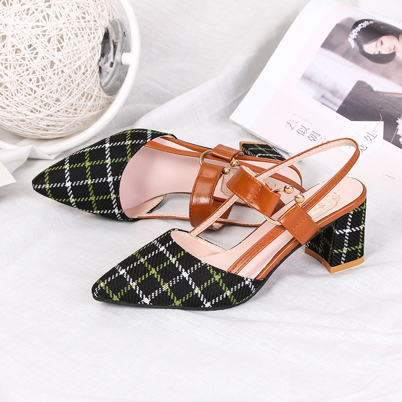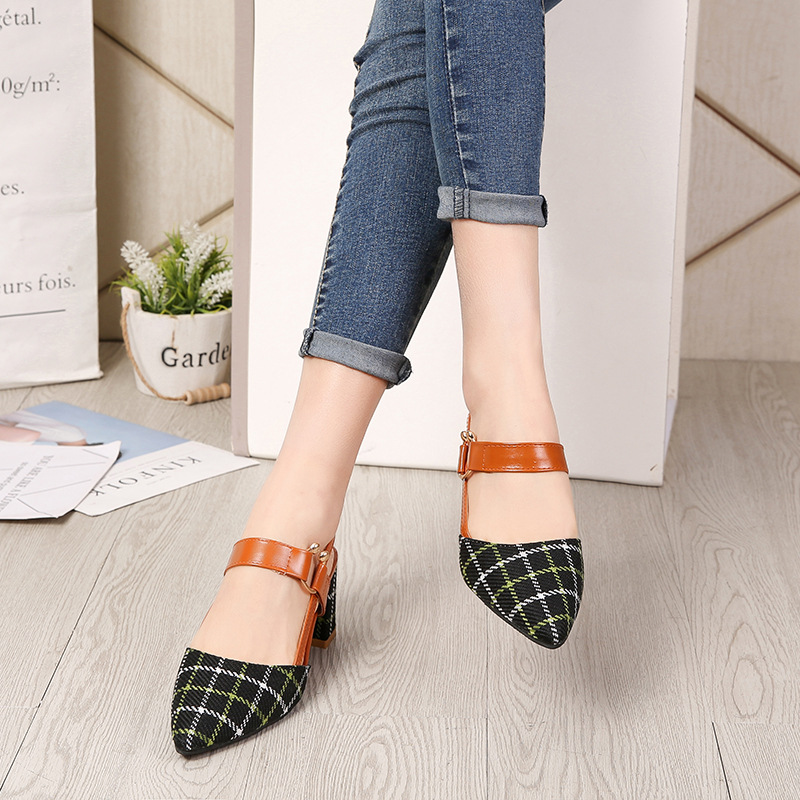 2025년 여름 여성을 위한 샌들, 새로운 스타일, 한국식 발가락 뾰족한 버클 로마 신발, 얕은 굽의 두꺼운 굽 하이힐스토어 가기