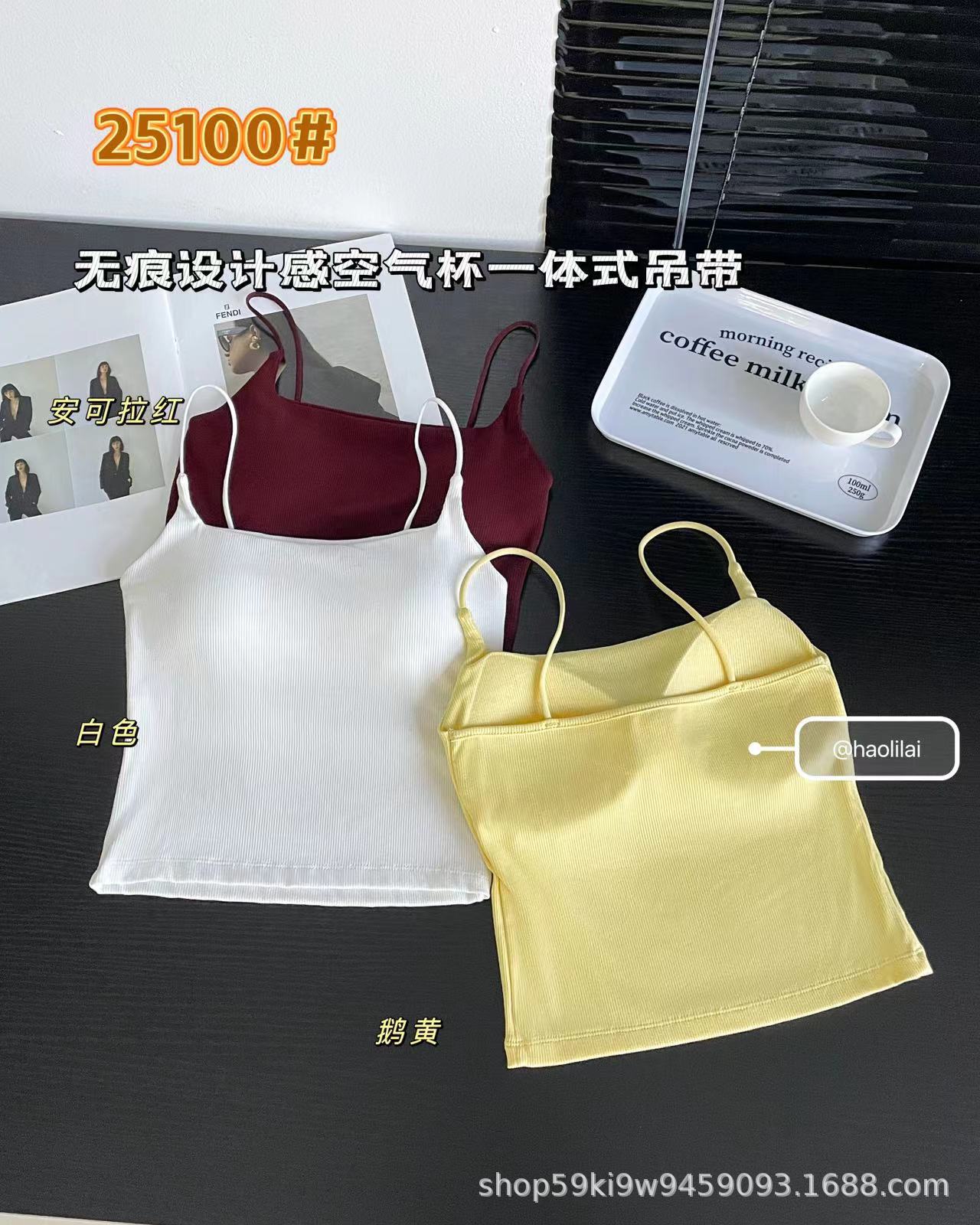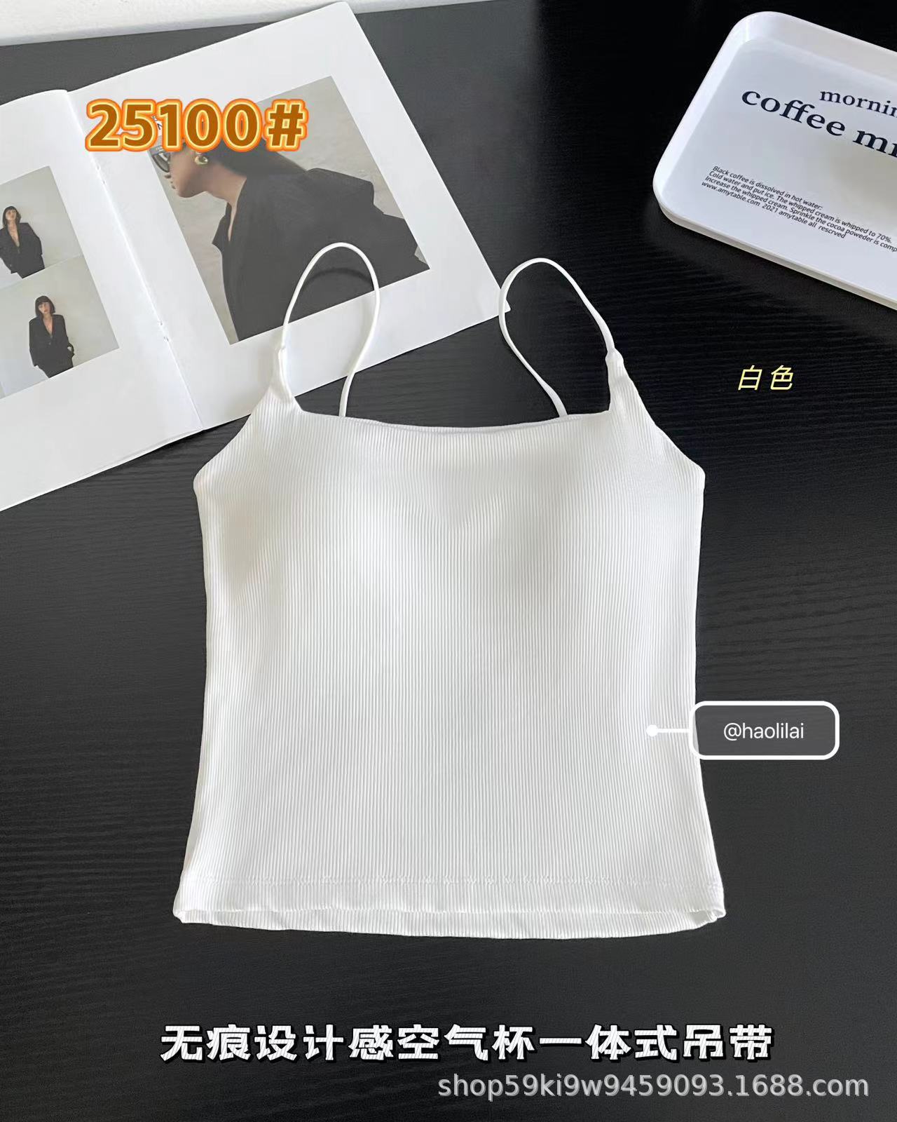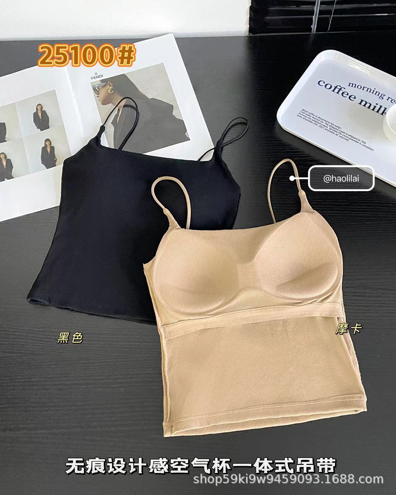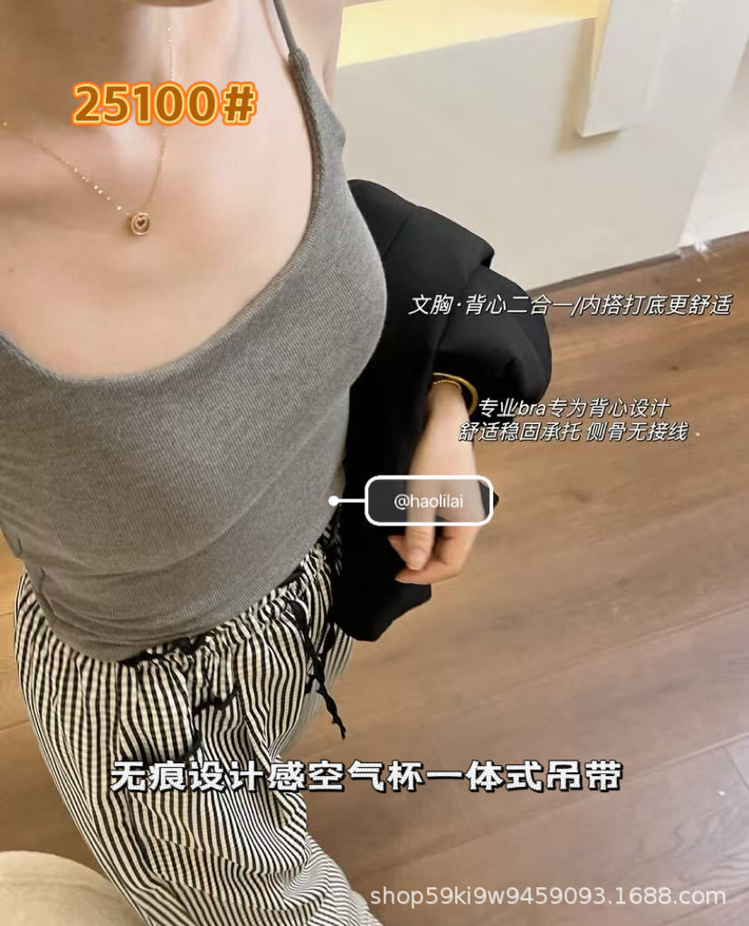 25100 # 봄과 여름 새로운 높은 세트 스레드 면화 원활한 디자인 얇은 벨트 에어 컵 슬링 슬림 여성스토어 가기