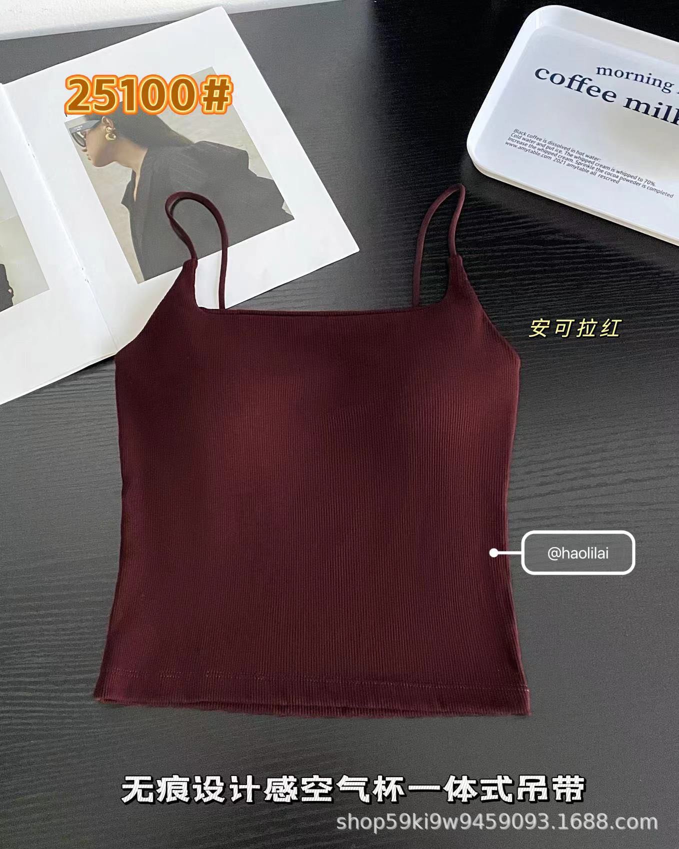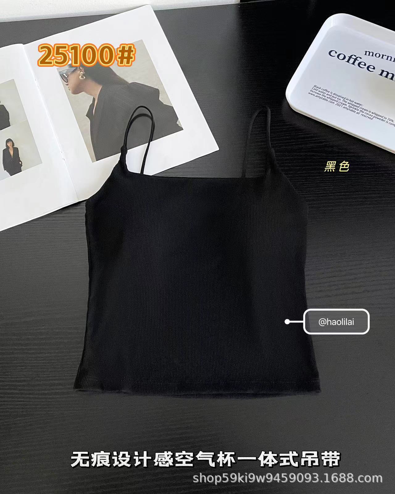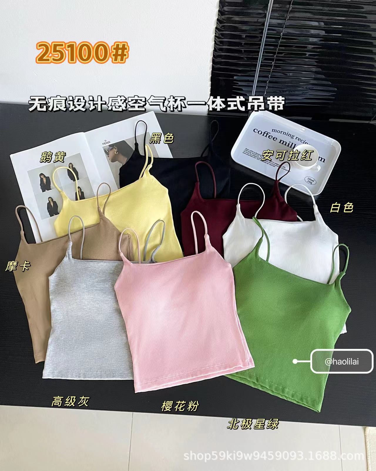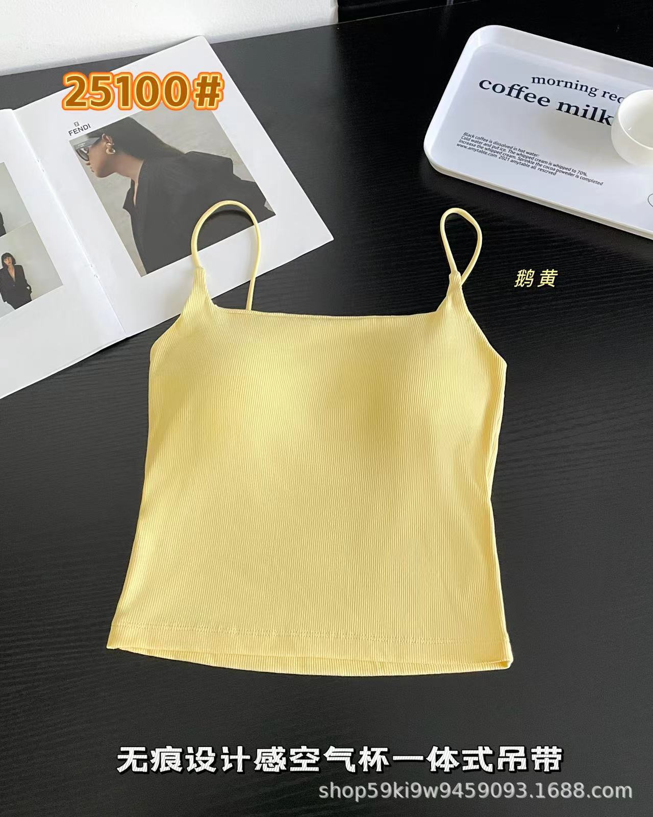 25100 # 봄과 여름 새로운 높은 세트 스레드 면화 원활한 디자인 얇은 벨트 에어 컵 슬링 슬림 여성스토어 가기