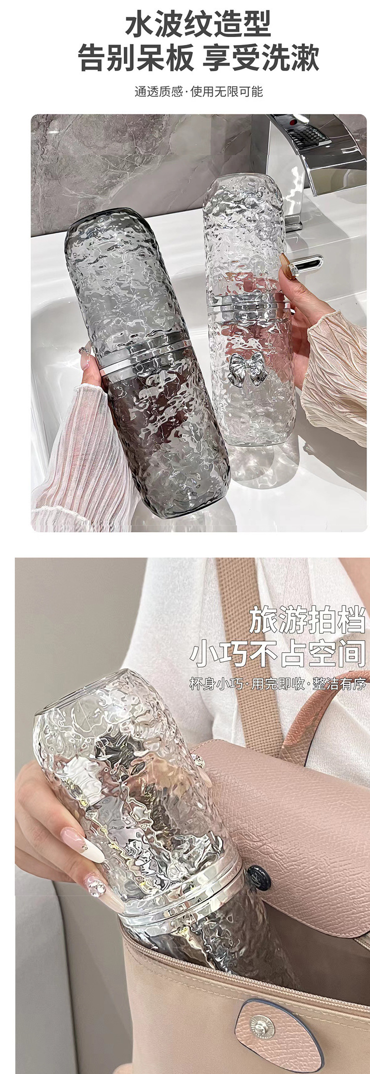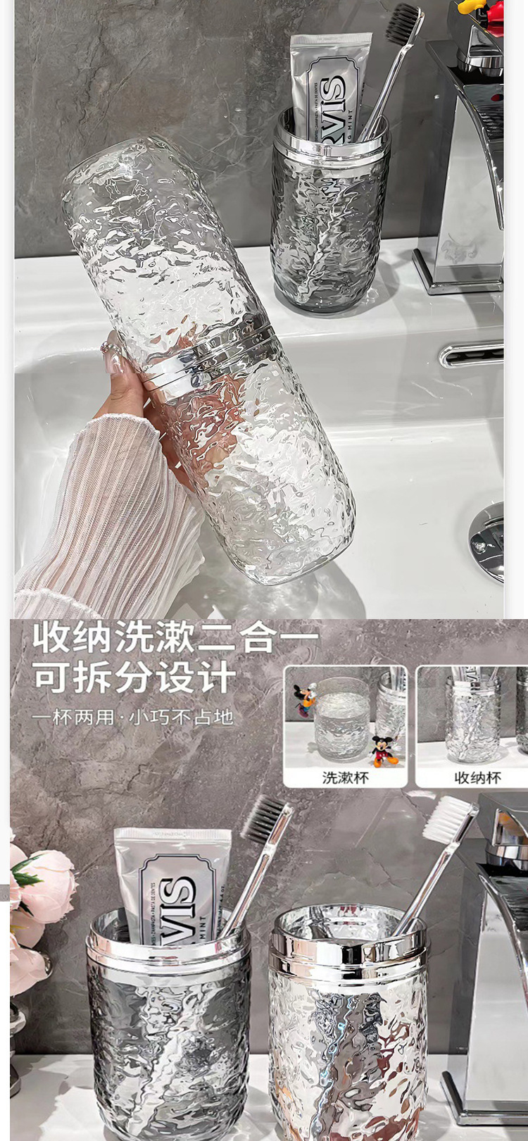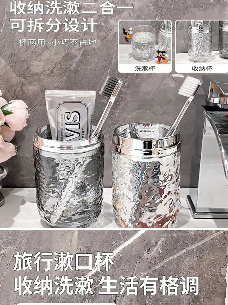 욕실 세면컵, 여행기숙사, 휴대용 라이트 럭셔리 3-in-1 출장 구강청결제 컵, 칫솔 보관함 0