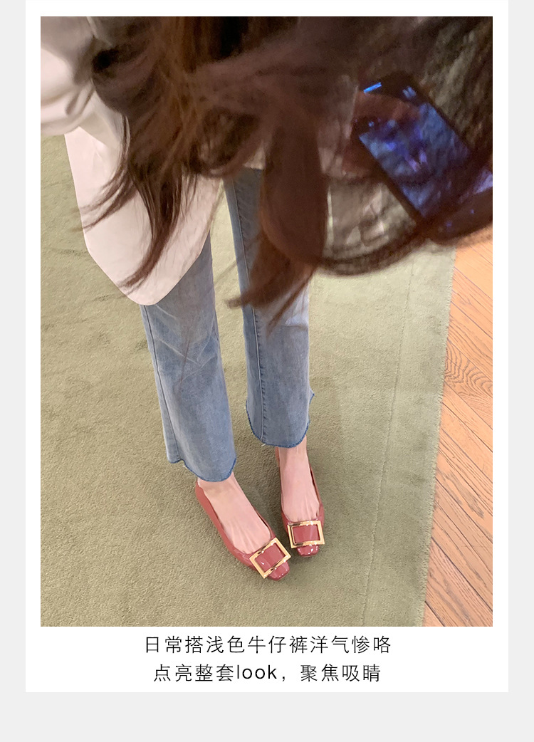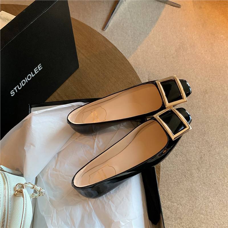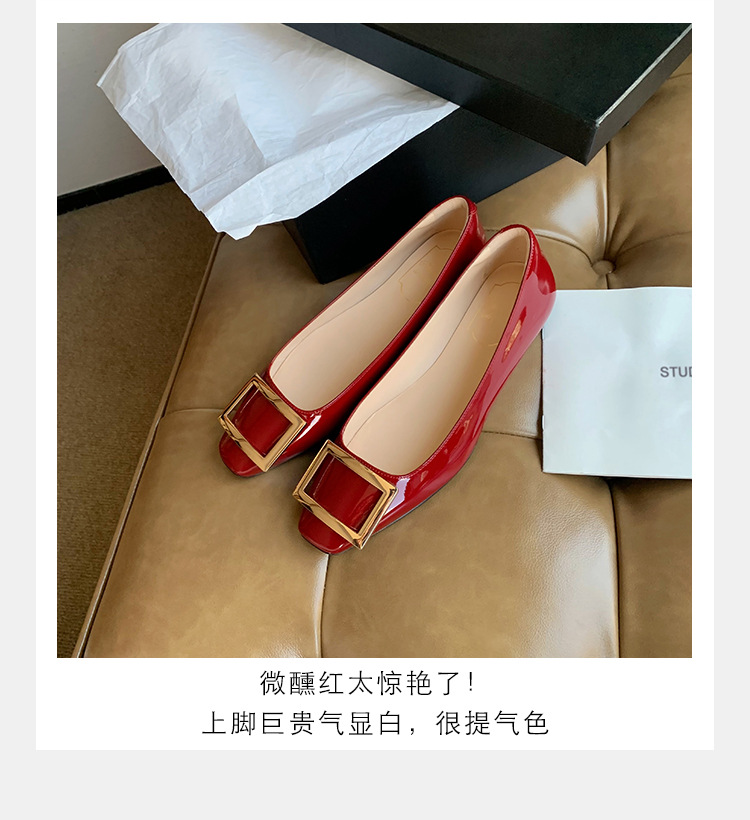 양가죽 버전 포도색 통근용 여성용 스퀘어토 슈즈, 다용도 로우힐 스퀘어버클 얕은 굽 신발, 작업화, 로우힐, 편안함스토어 가기