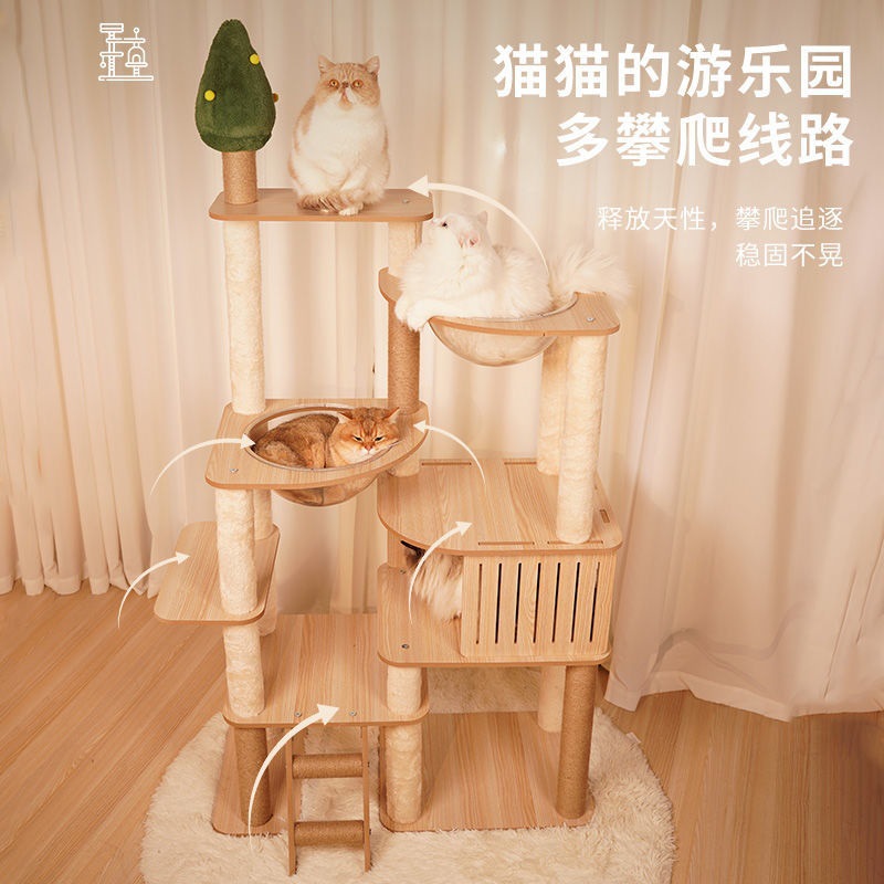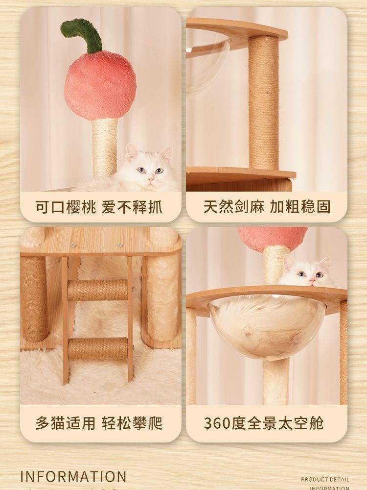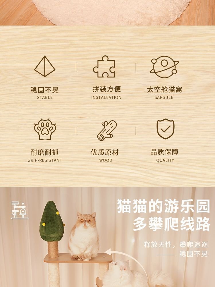 고양이 클라이밍 프레임, 고양이 둥지, 고양이 트리, 일체형 고양이 프레임, 고양이 스크래치 프레임, 원목 오일럼 컬럼 점프 플랫폼, 우주 캡슐 고양이 용품스토어 가기