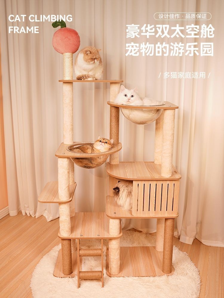 고양이 클라이밍 프레임, 고양이 둥지, 고양이 트리, 일체형 고양이 프레임, 고양이 스크래치 프레임, 원목 오일럼 컬럼 점프 플랫폼, 우주 캡슐 고양이 용품