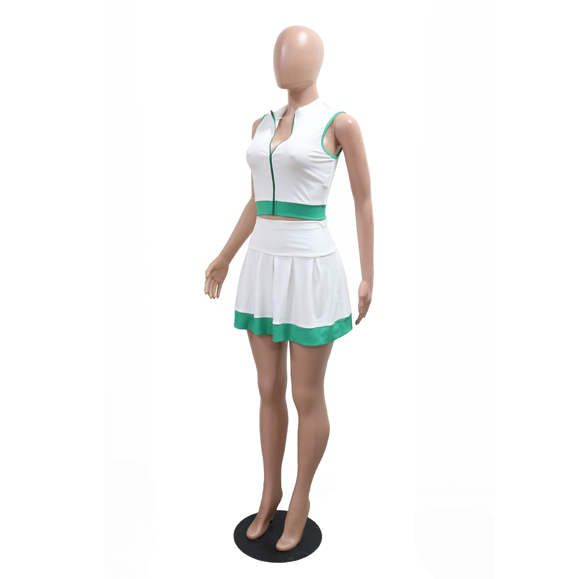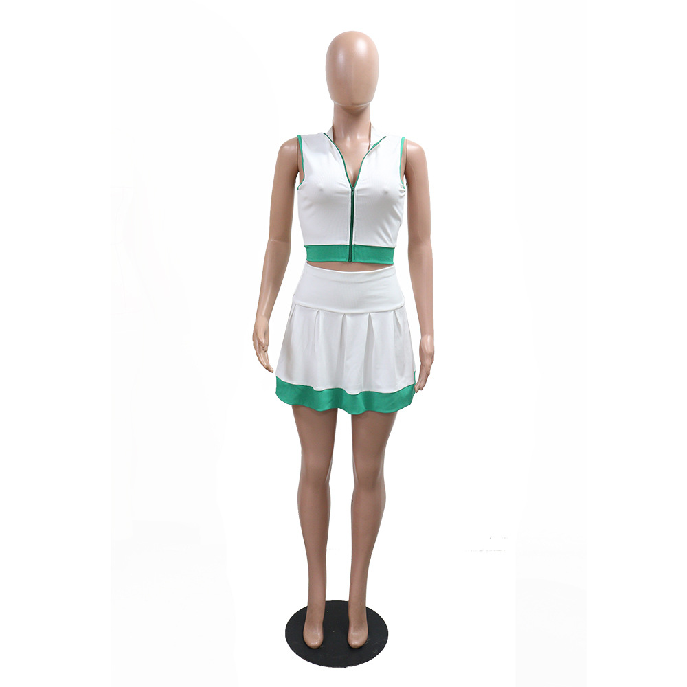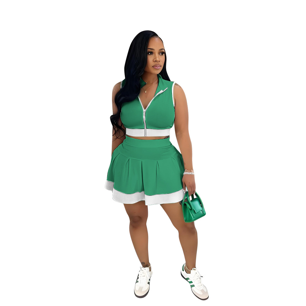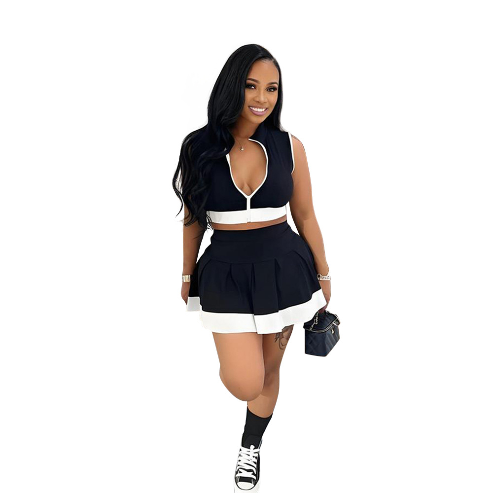 CY901804 유럽과 미국의 대외 무역 아마존 대외 무역 새로운 민소매 지퍼 탑 짧은 치마 세트 컬러 매칭