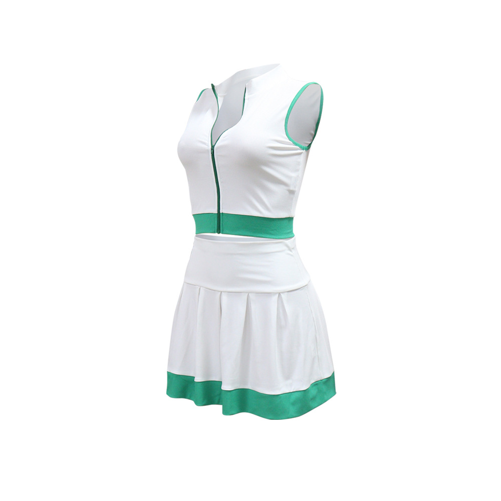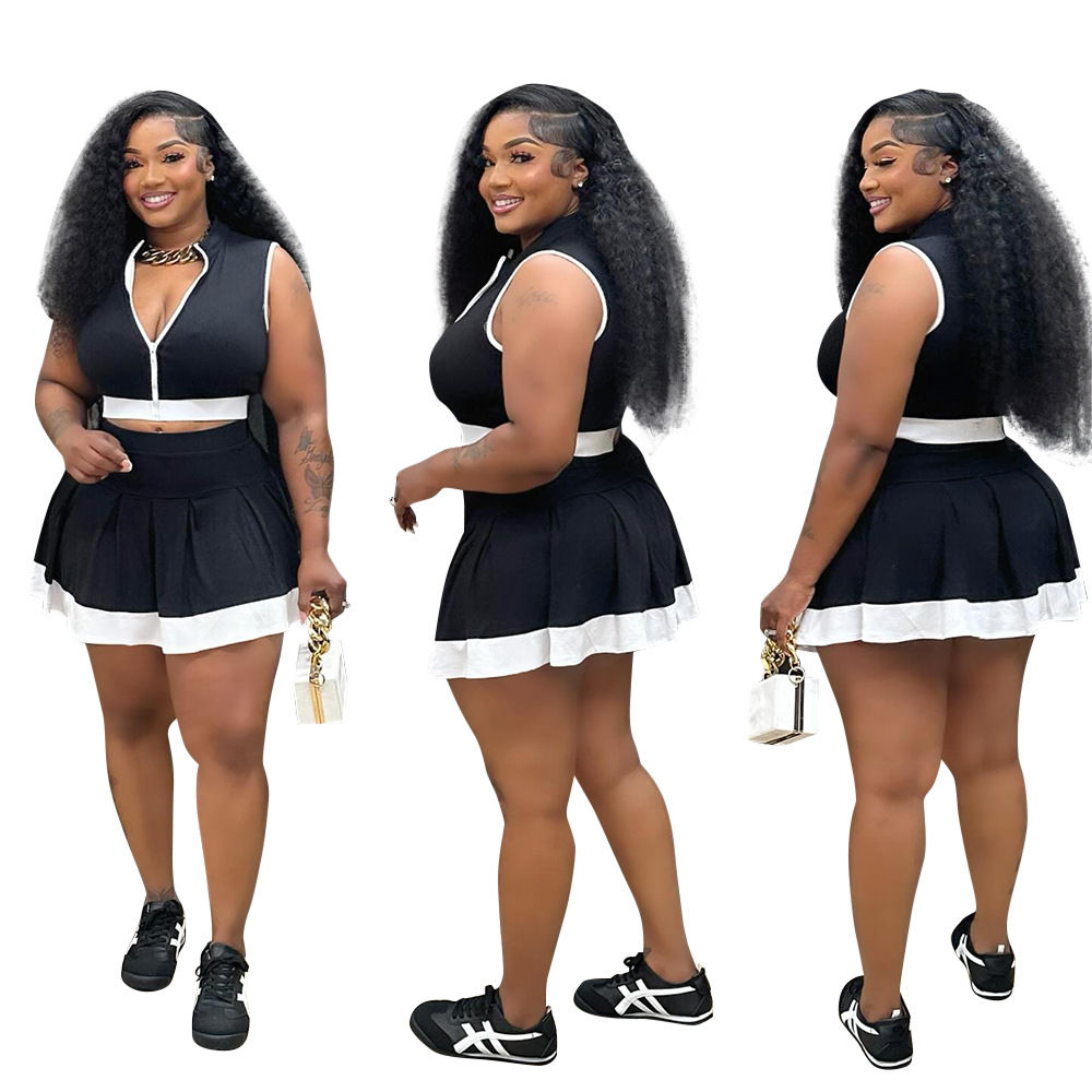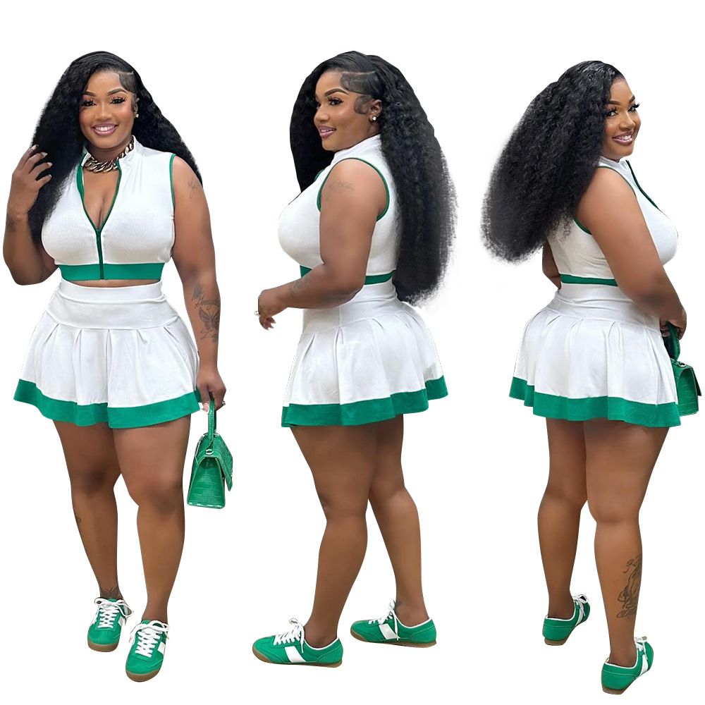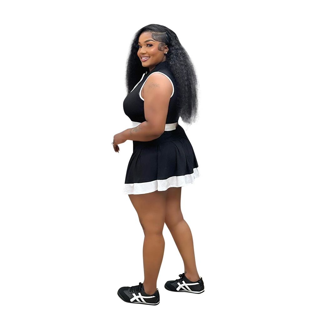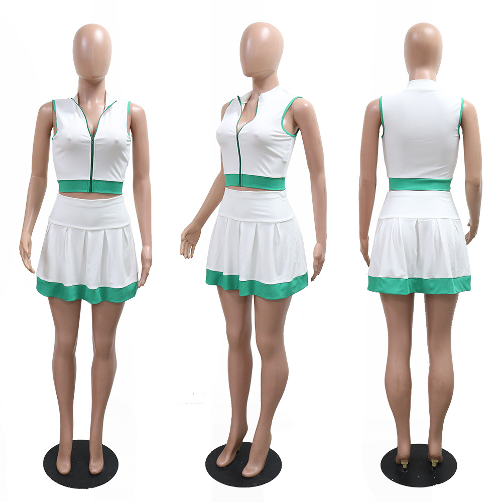 CY901804 유럽과 미국의 대외 무역 아마존 대외 무역 새로운 민소매 지퍼 탑 짧은 치마 세트 컬러 매칭