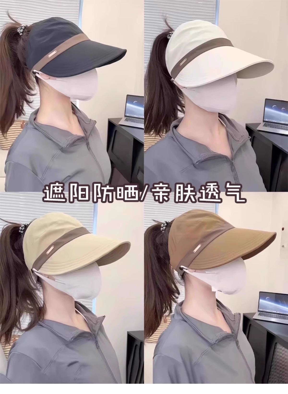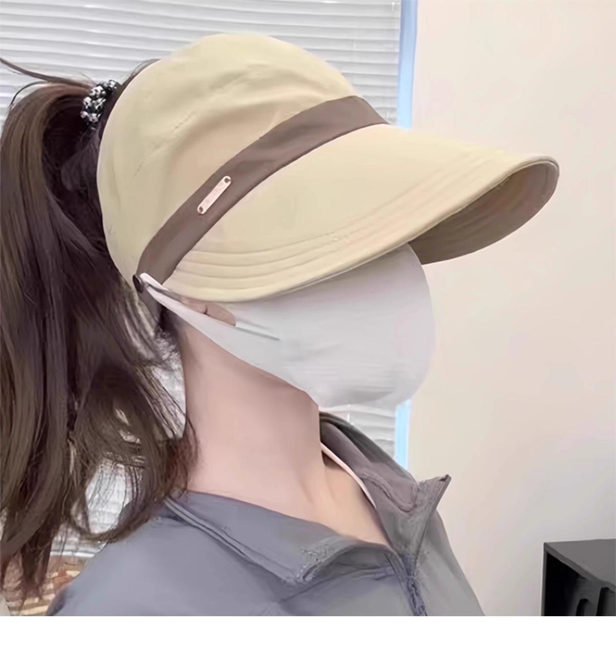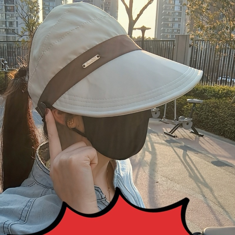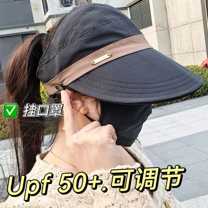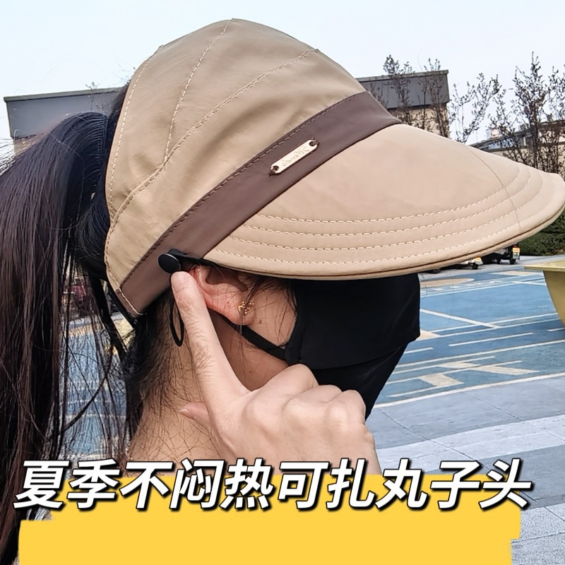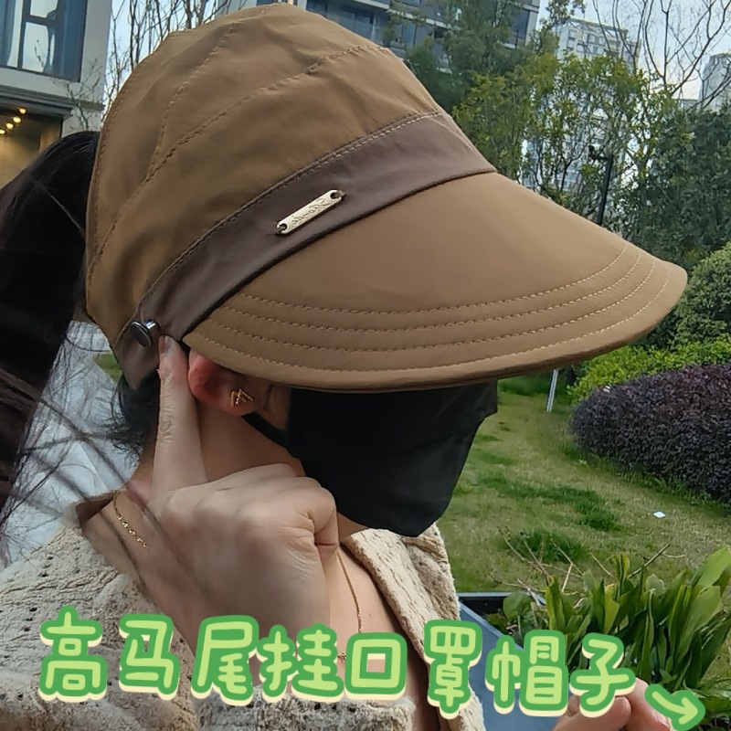 새로운 Ruth의 여성용 자외선 차단 모자, 한국식 다용도 어부 모자, 포니테일이 달린 챙이 넓은 컬러 매칭 빈 탑 태양 모자