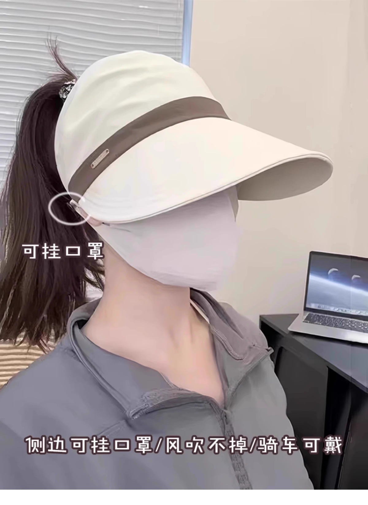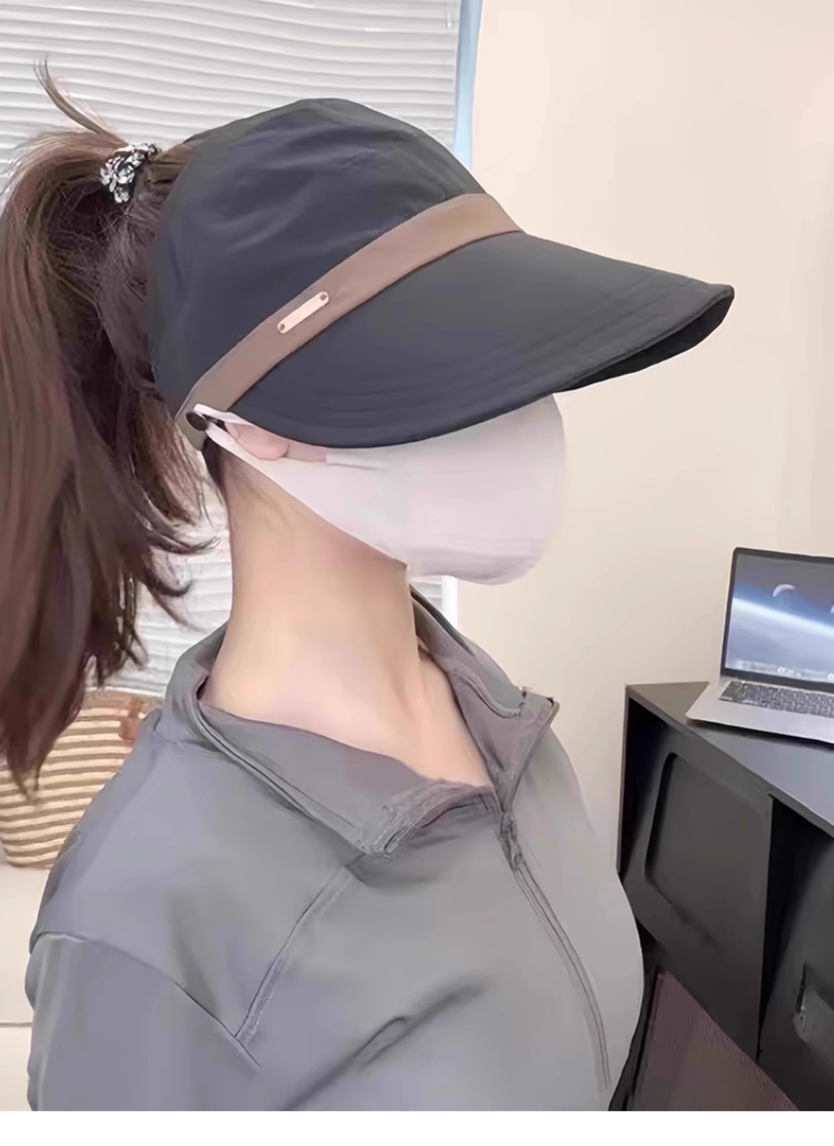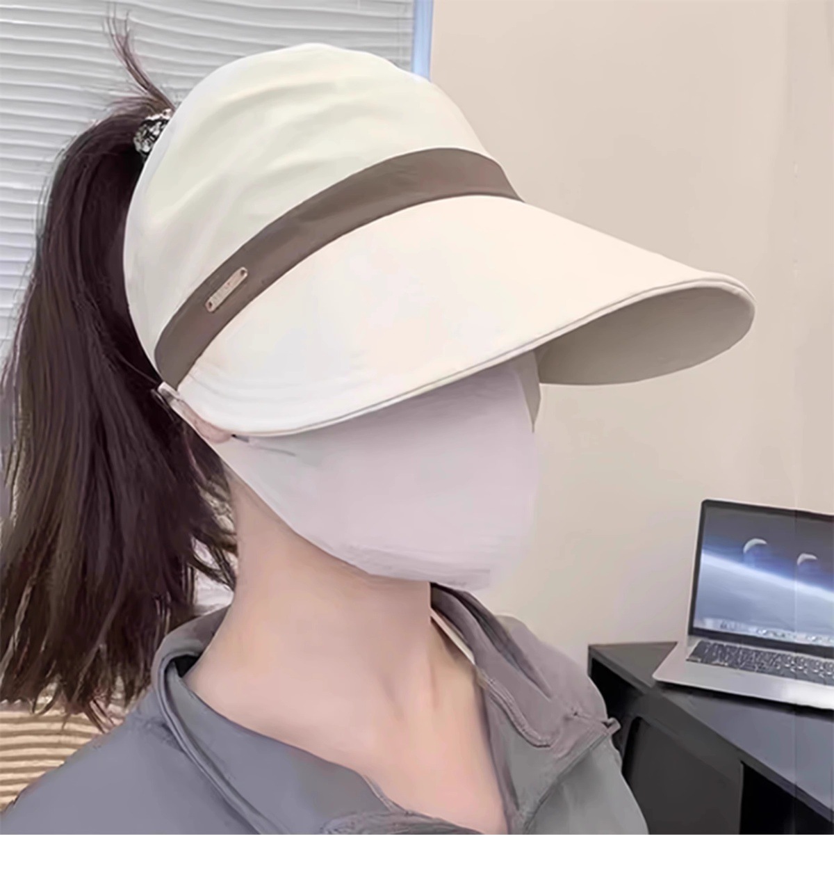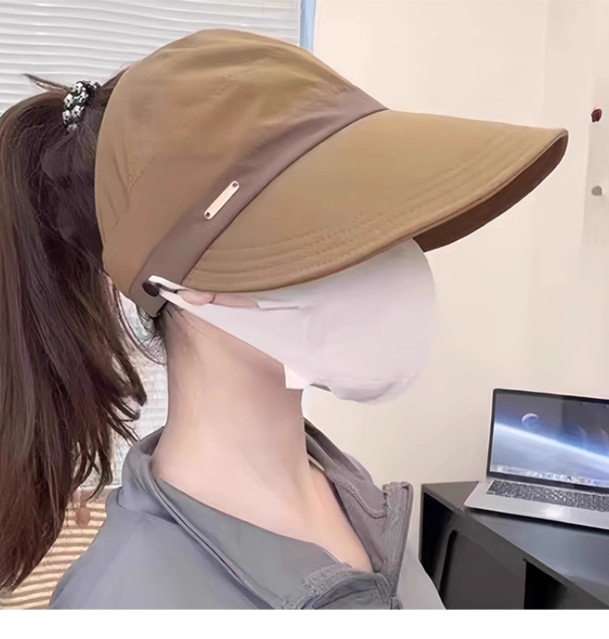 새로운 Ruth의 여성용 자외선 차단 모자, 한국식 다용도 어부 모자, 포니테일이 달린 챙이 넓은 컬러 매칭 빈 탑 태양 모자