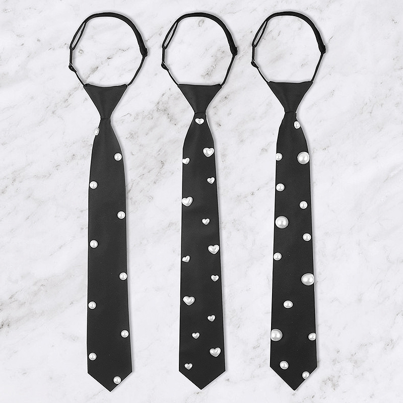Jk Lazy Tie 여성 탄성 밴드 로프 버클 무료 진주 장식 올 매치 게으른 넥타이 학생 그룹 타이