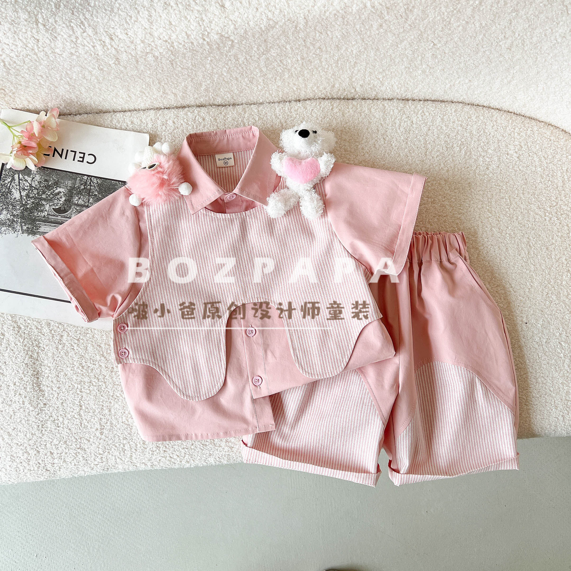2025 년 여름 새 소년 한국 캐주얼 투피스 세트 어린이 아기 어깨 인형 가짜 투피스 디자인 세트스토어 가기