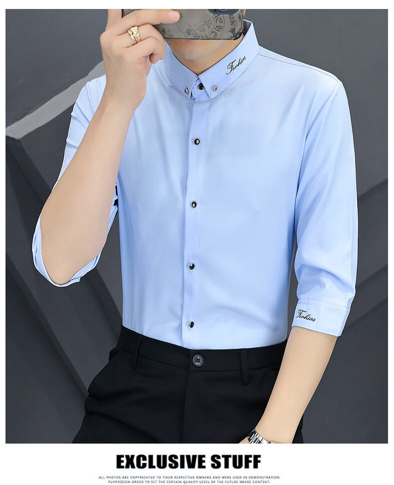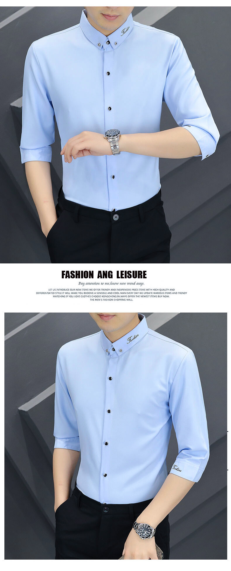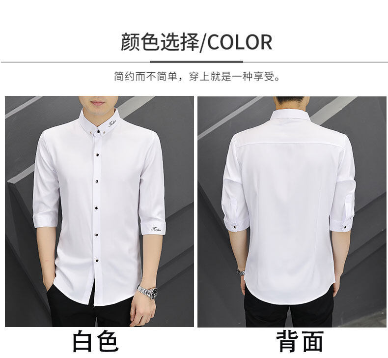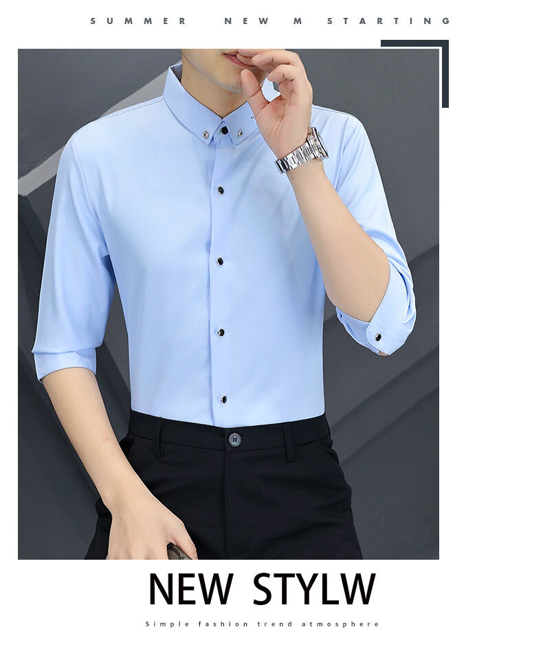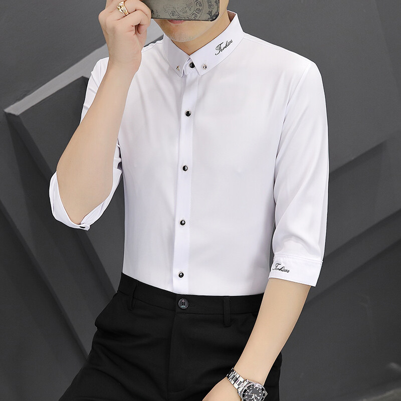 2025 여름 셔츠 남성 한국 스타일 슬림 남성 셔츠 청소년 중간 소매 흰색 인치 셔츠 유행