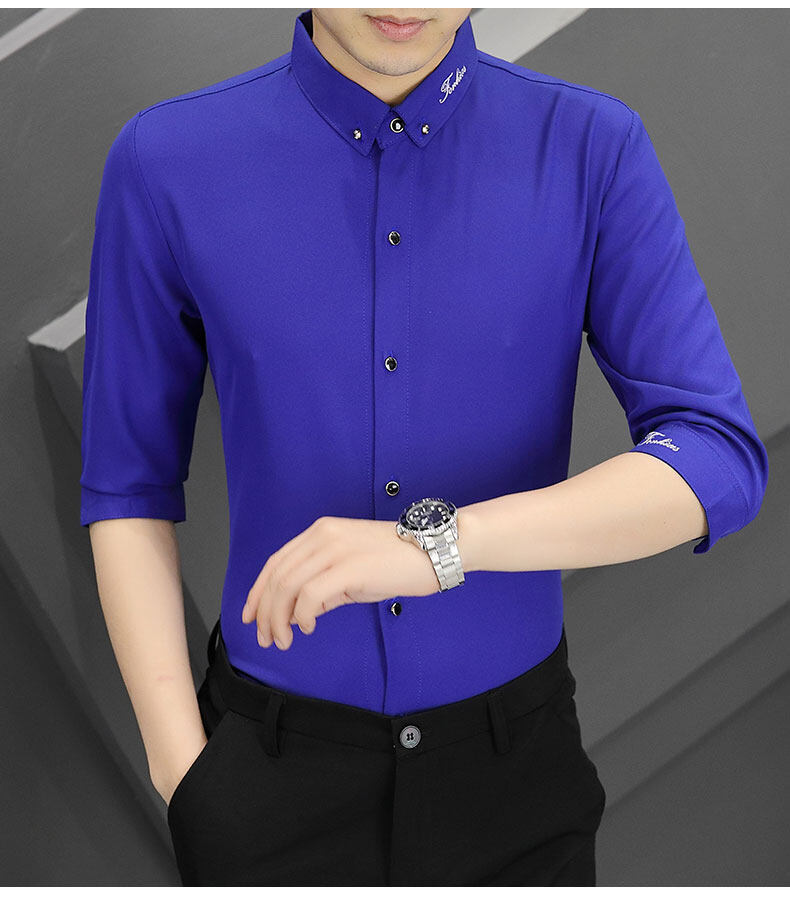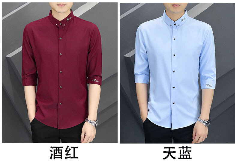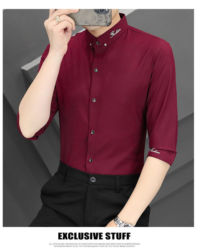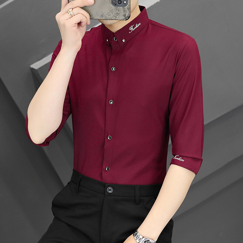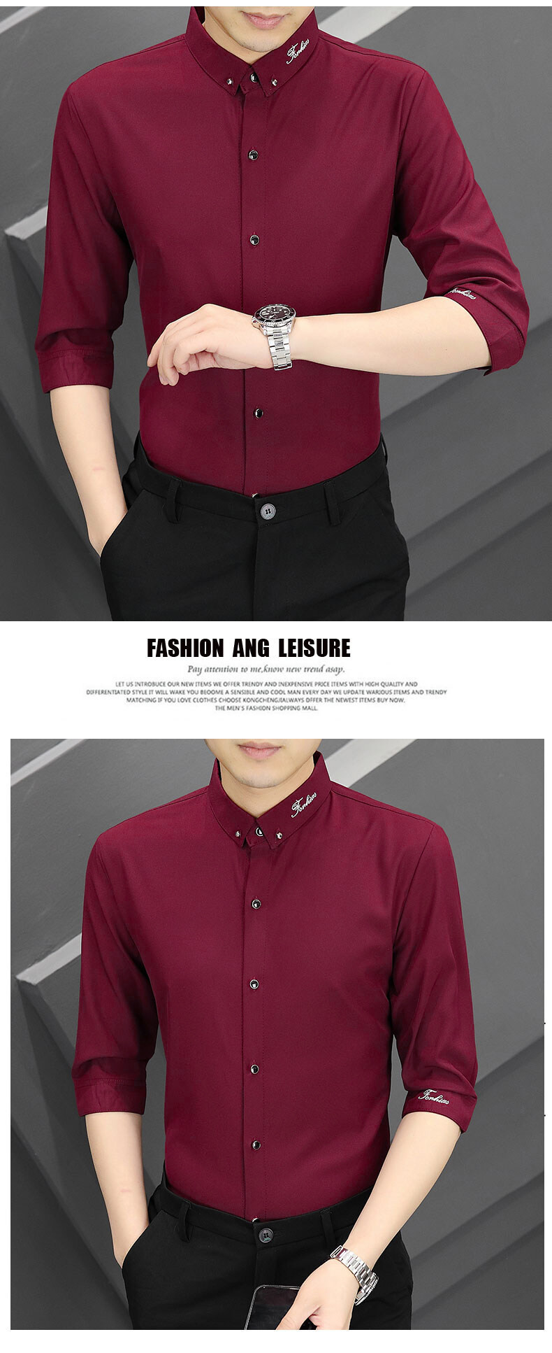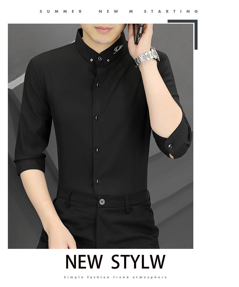 2025 여름 셔츠 남성 한국 스타일 슬림 남성 셔츠 청소년 중간 소매 흰색 인치 셔츠 유행