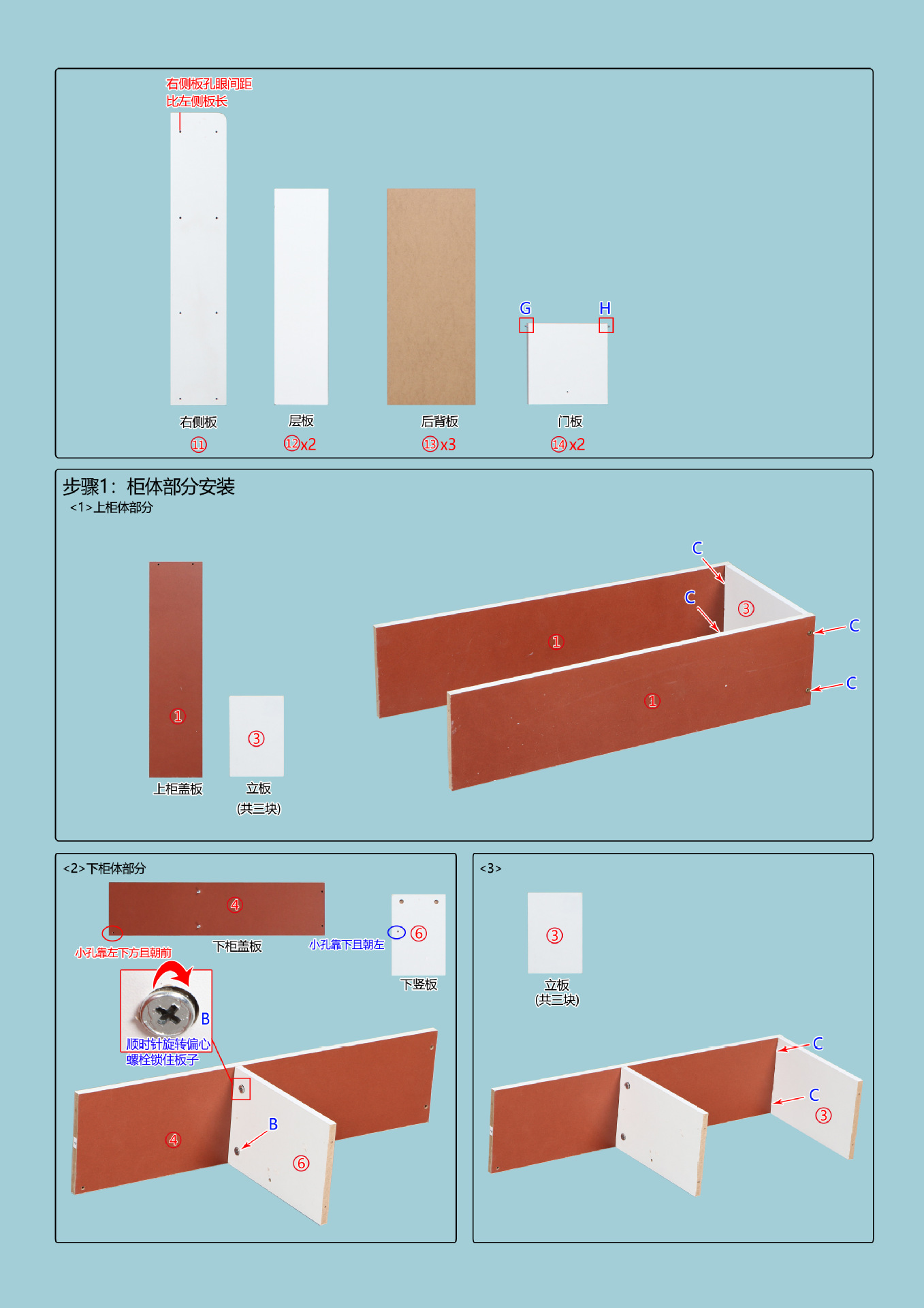 • 3단 이중 캐비닛 도어 노란색 전나무 [접이식 60-110CM]