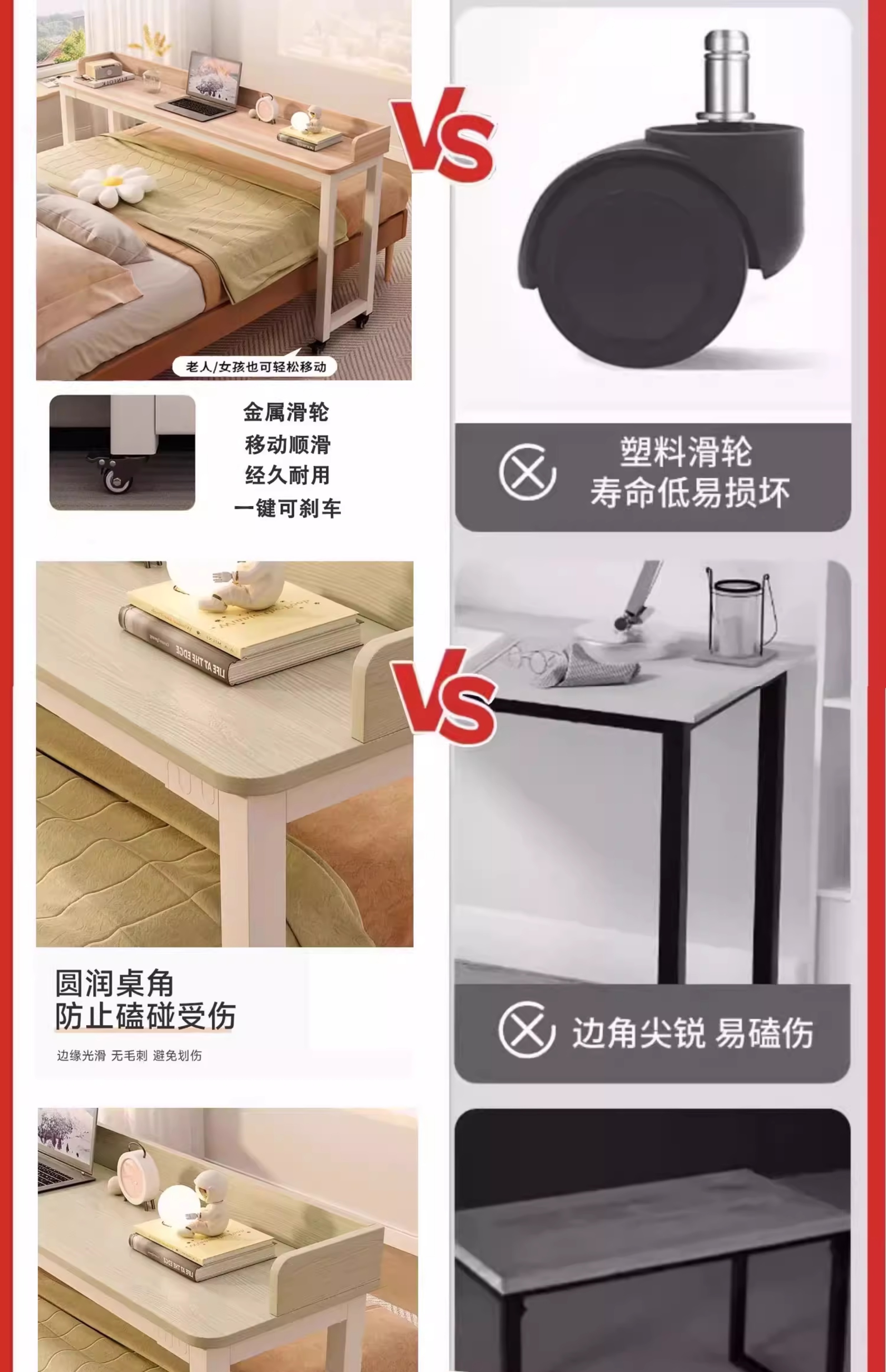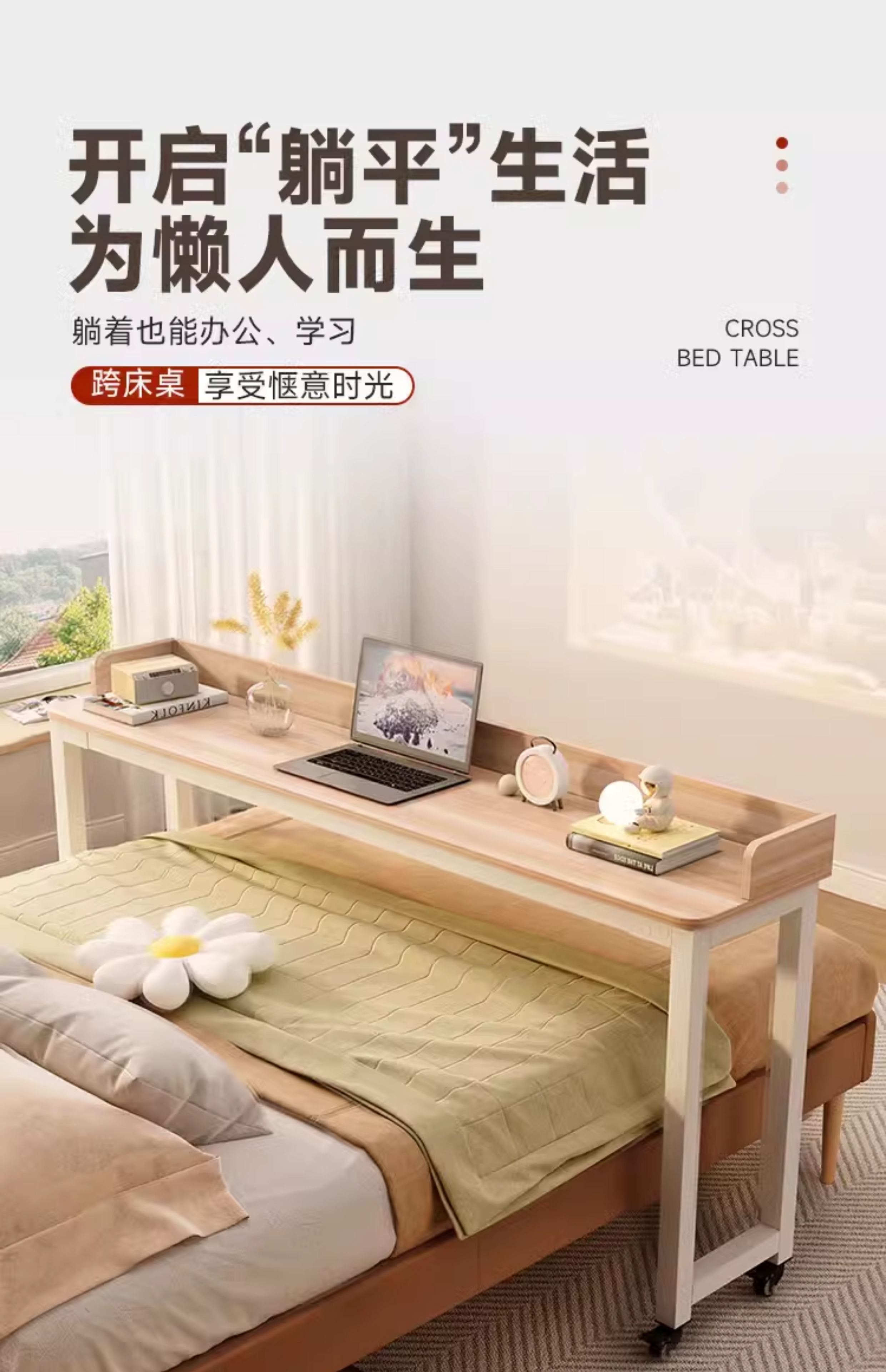게으른 사람들을 위한 원목 이동식 침대 사이 테이블, 침대 책상, 침대 옆 테이블, 가정용 침실 침대 끝 컴퓨터 테이블, 학습 책상