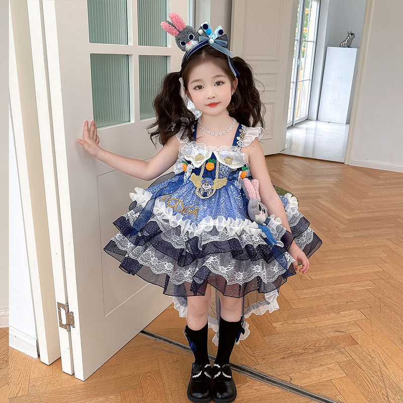 주디 원피스 소녀의 로리타 원피스 2025 년 여름 새로운 어린이 공주 원피스 만화 토끼 경찰관 원피스스토어 가기