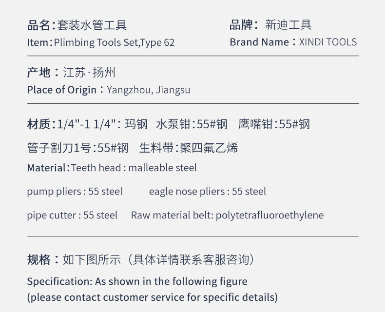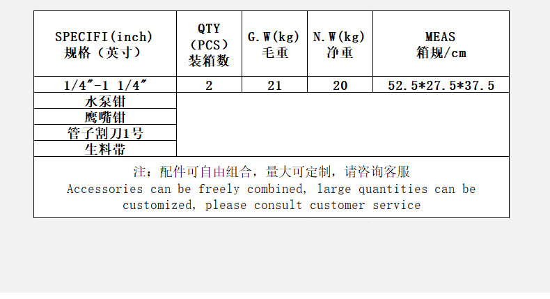 • 완전한 세트(치아 헤드, 워터 펌프 플라이어, 올크라논 플라이어, 파이프 커터 포함)