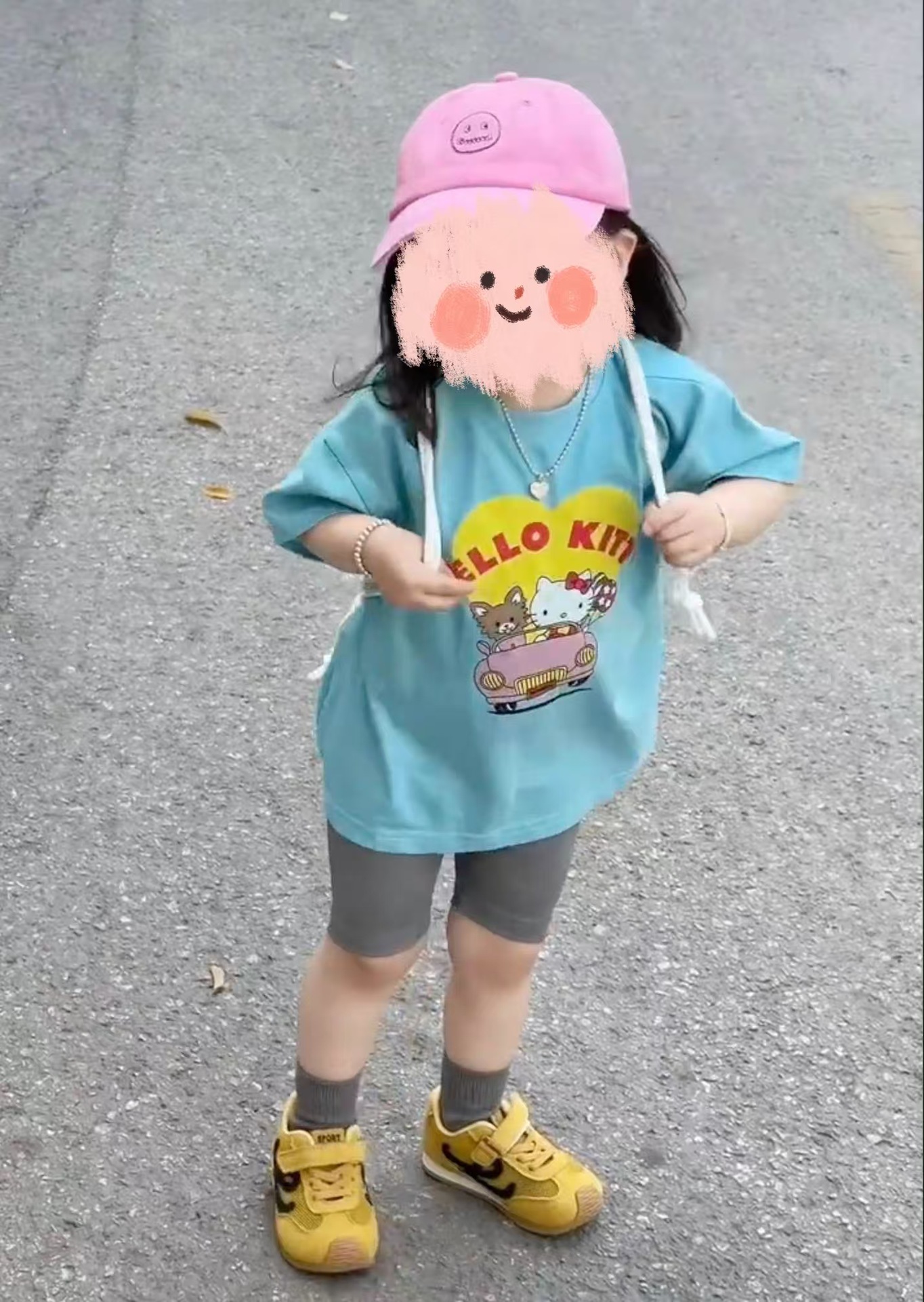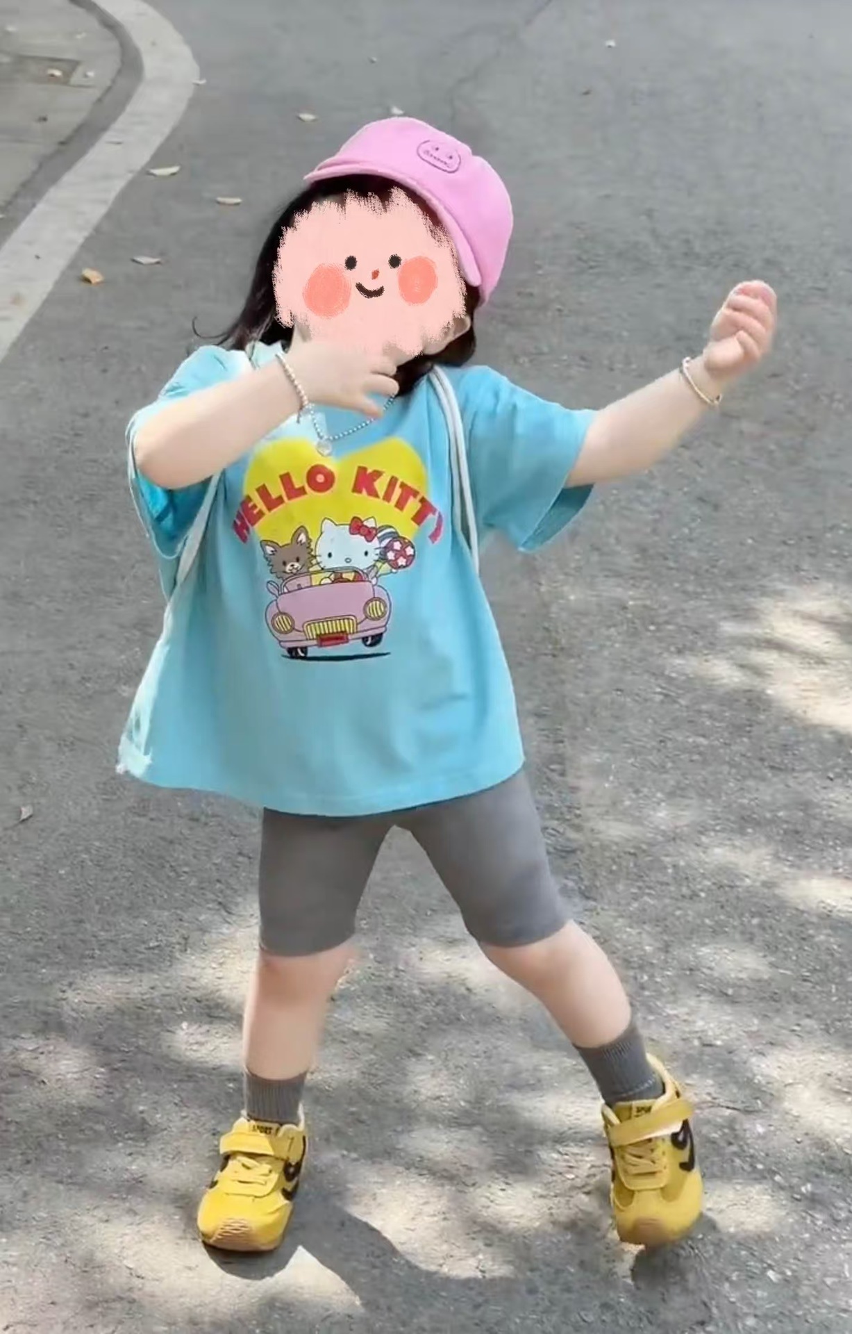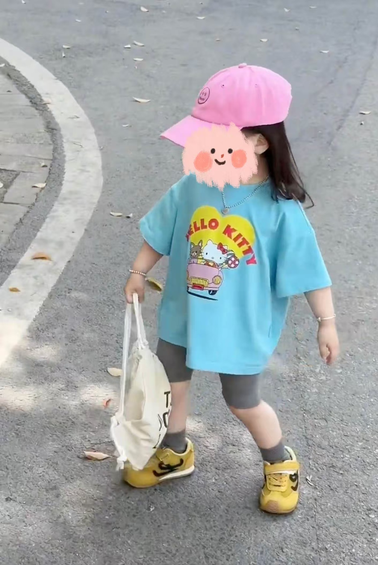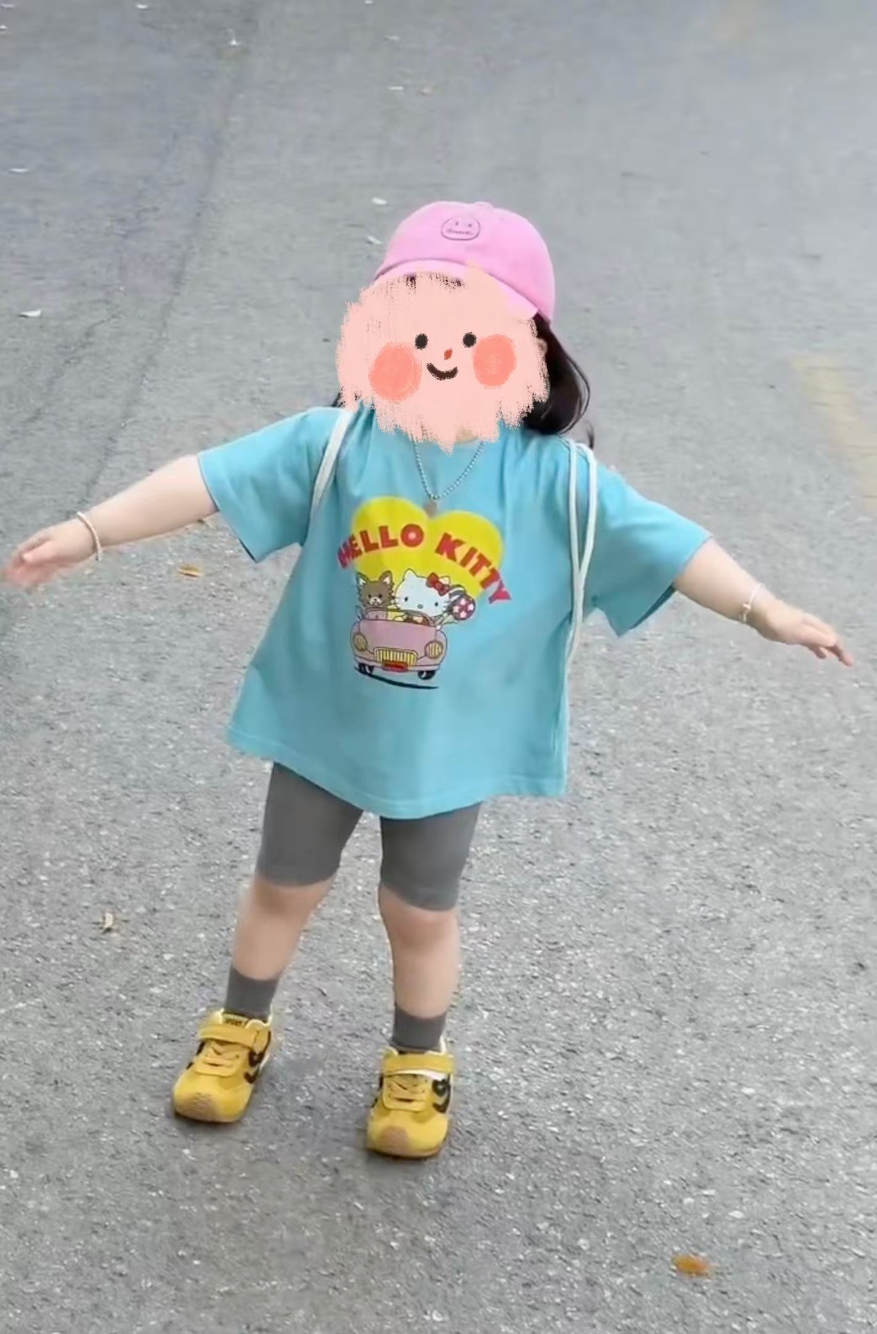아기 소녀 여름 귀여운 티셔츠 2025 새로운 어린이 서양식 만화 KT 고양이 인쇄 느슨한 풀오버 라운드 넥 티셔츠