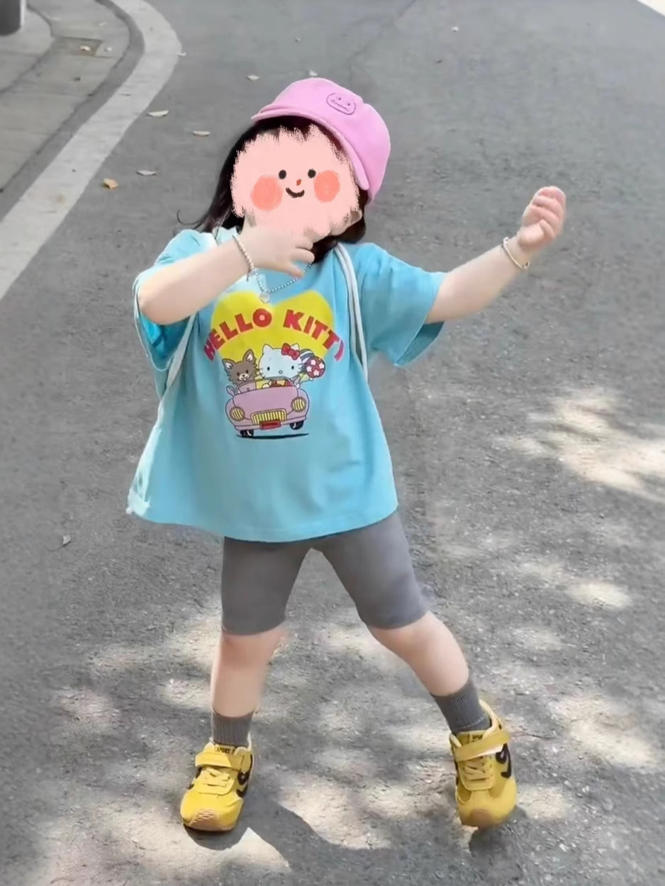 아기 소녀 여름 귀여운 티셔츠 2025 새로운 어린이 서양식 만화 KT 고양이 인쇄 느슨한 풀오버 라운드 넥 티셔츠스토어 가기