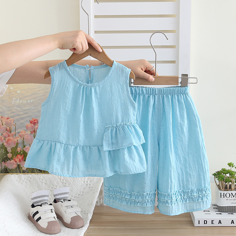 2025 신간 걸스 여름 민소매 여름 원피스 0-5 년 된 조끼 세트 바지 투피스 아동복 유행 머리스토어 가기