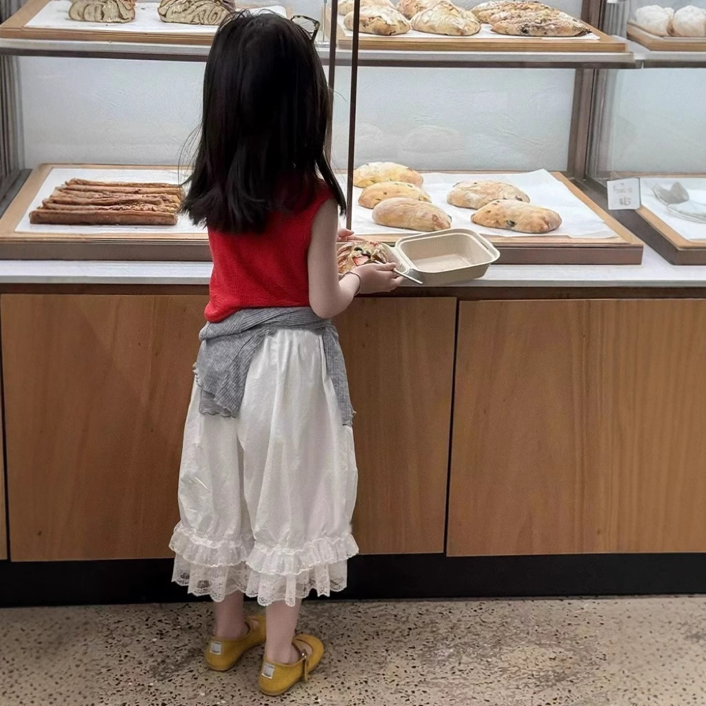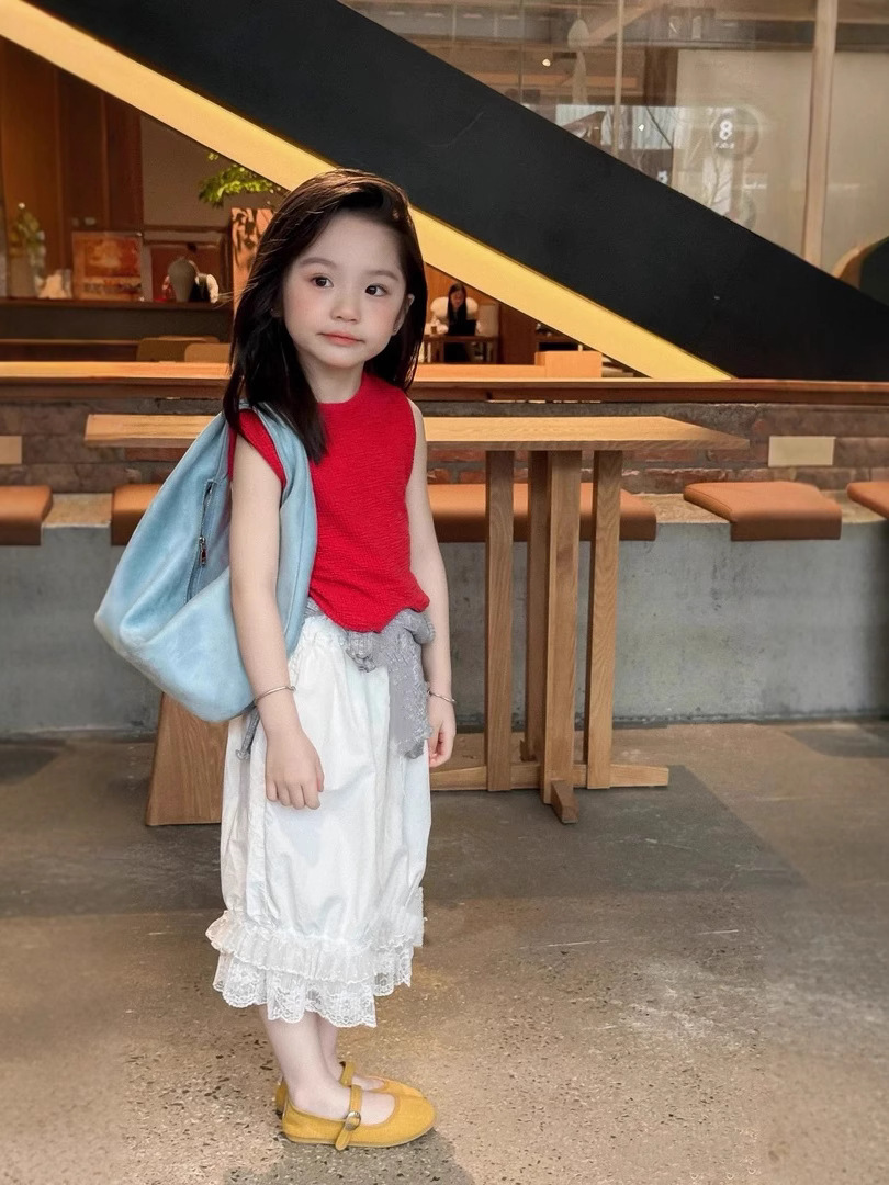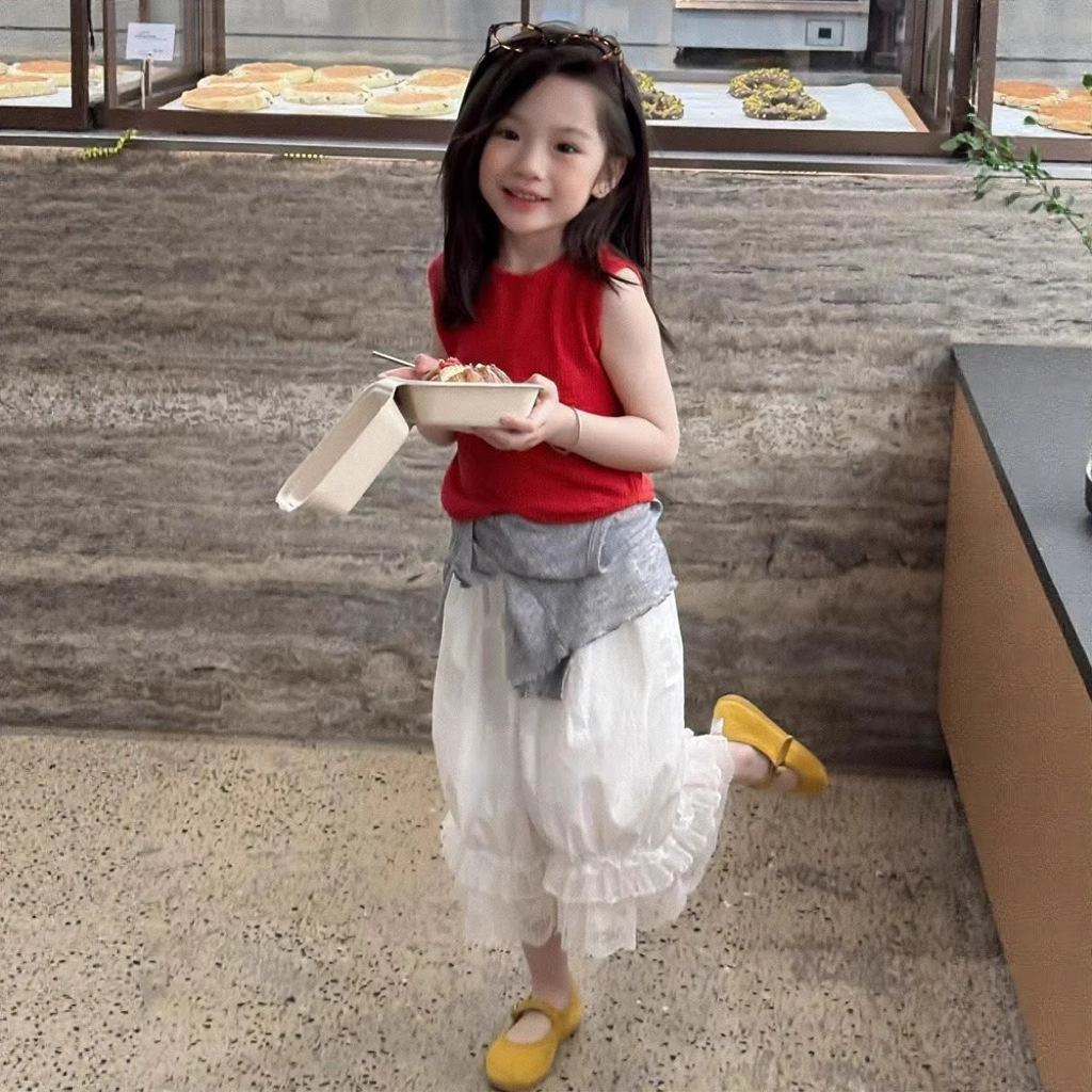 아동복 소녀 서양식 세트 여름 빨간 조끼 반팔 레이스 바지 어린이 아기의 여름 패션스토어 가기
