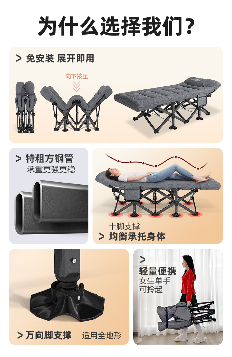 접이식 침대, 사무실 싱글 침대, 점심 시간 안락 의자, 성인 가정용 간단한 야외 휴대용 캠프 침대, 낮잠 유물