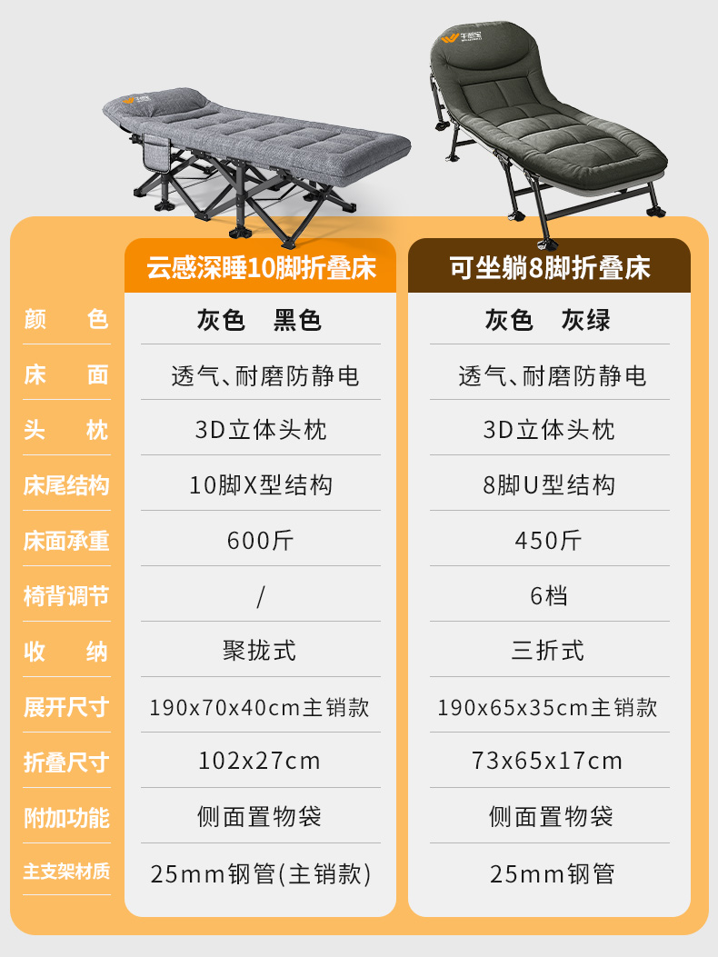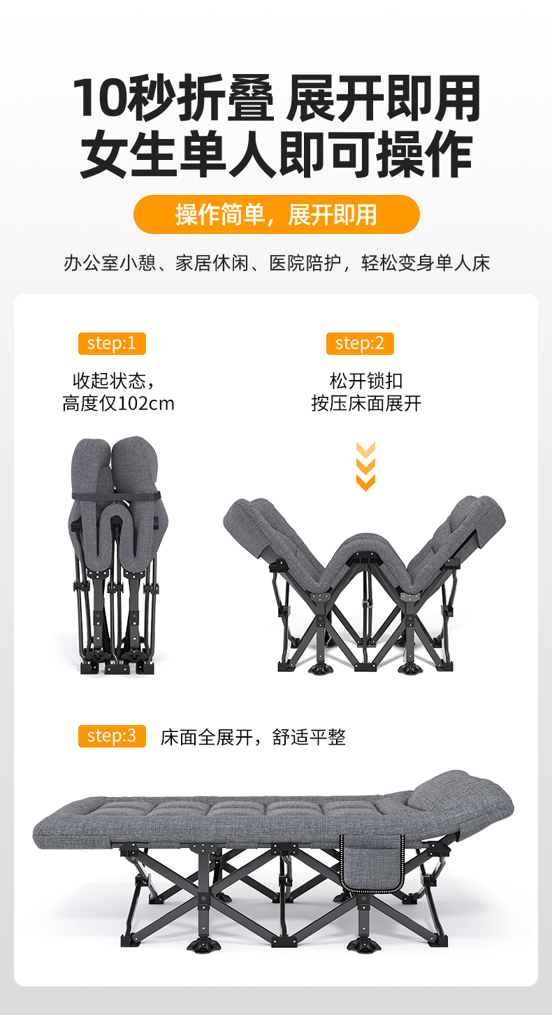 접이식 침대, 사무실 싱글 침대, 점심 시간 안락 의자, 성인 가정용 간단한 야외 휴대용 캠프 침대, 낮잠 유물스토어 가기