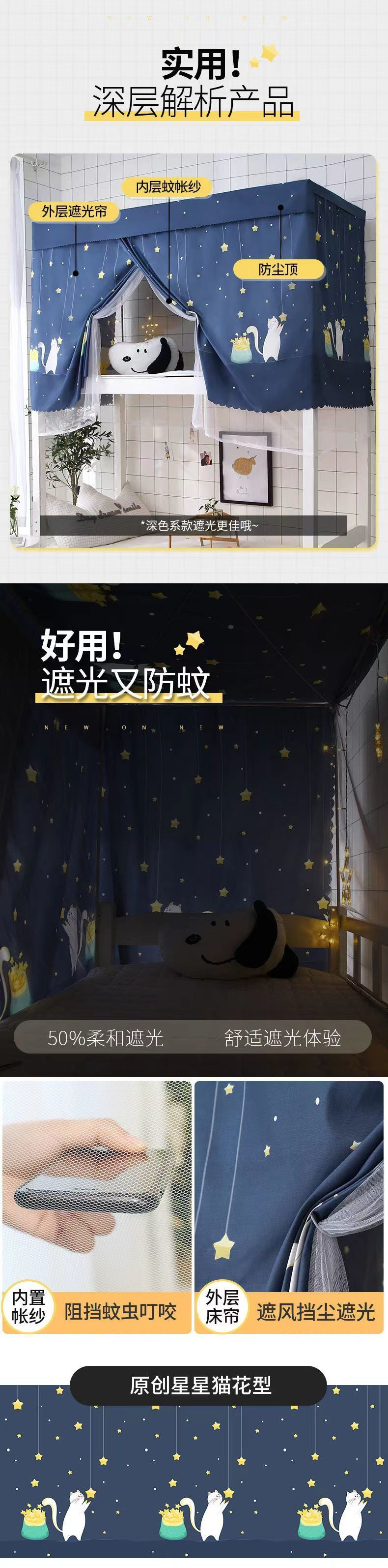 기숙사 침대 커튼과 모기장 일체형 학생 기숙사 이층 침대 싱글 침대 블랙아웃 커튼 침대 커튼 이층 침대 기숙사스토어 가기