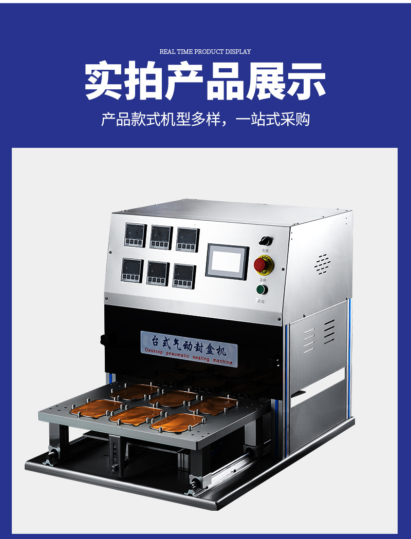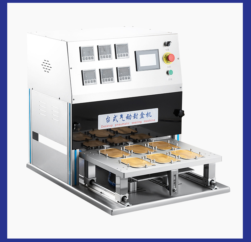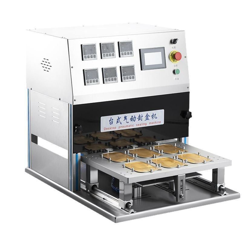 데스크탑 공압 필름 포장기, 맞춤형 케이터링 델리 신선도 유지 상자 진공 밀봉기, 완전 자동 공압 밀봉기