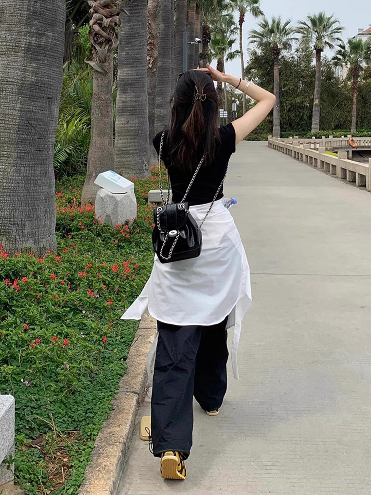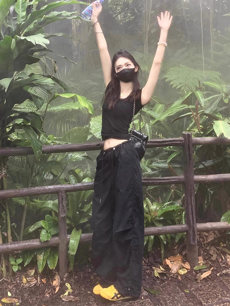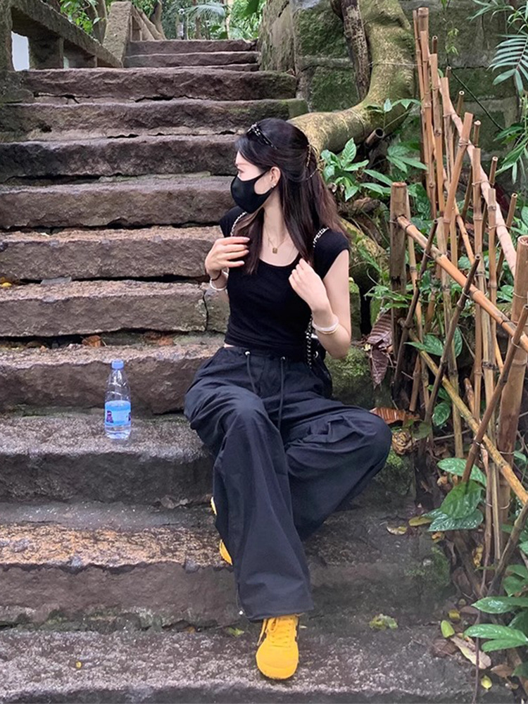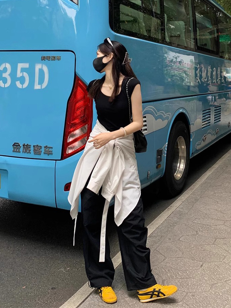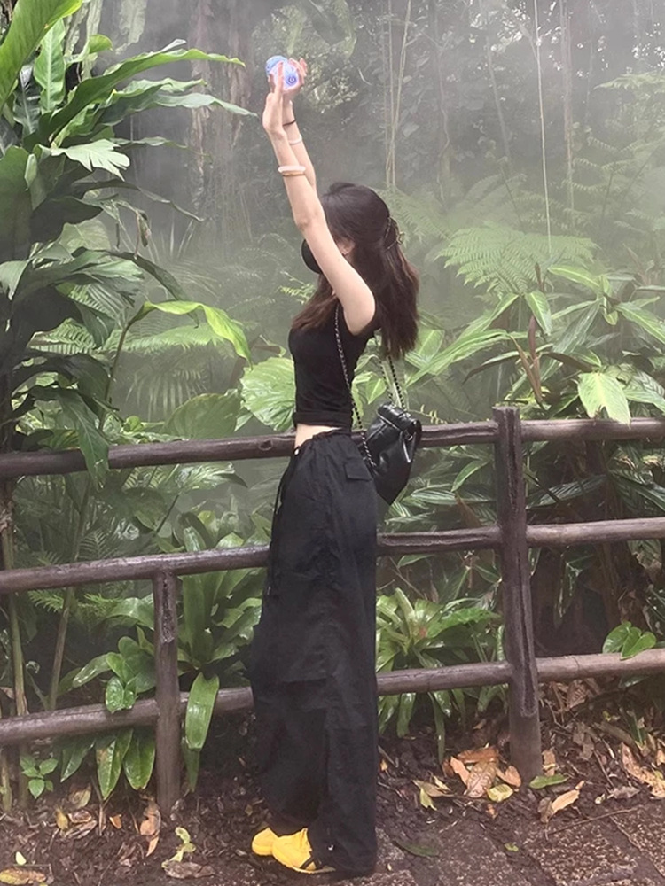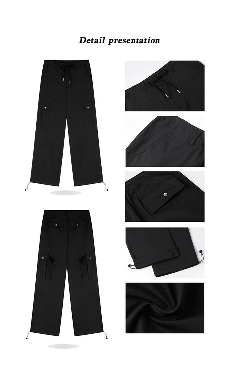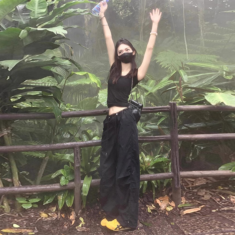 여자를위한 검은 색 높은 허리 넓은 다리 작업복 2025 여름 새로운 느슨한 얇은 얼음 실크 속건성 캐주얼 바지스토어 가기