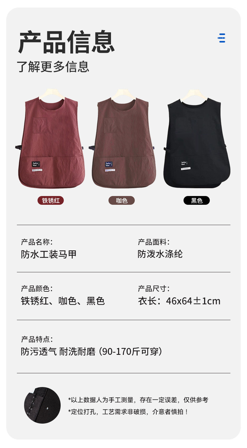 맞춤형 조끼 앞치마 남녀공용 주방 앞치마 방수 및 방오 커피숍 맞춤형 로고 작업복