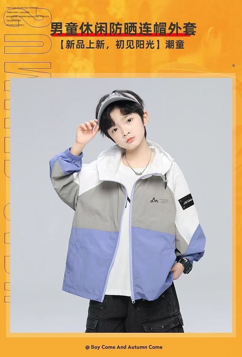소년 여름 자외선 차단 의류, 얇고 새로운 스타일, 중대형 어린이 피부 의류, 가볍고 통기성이 있으며 자외선 차단 의류스토어 가기