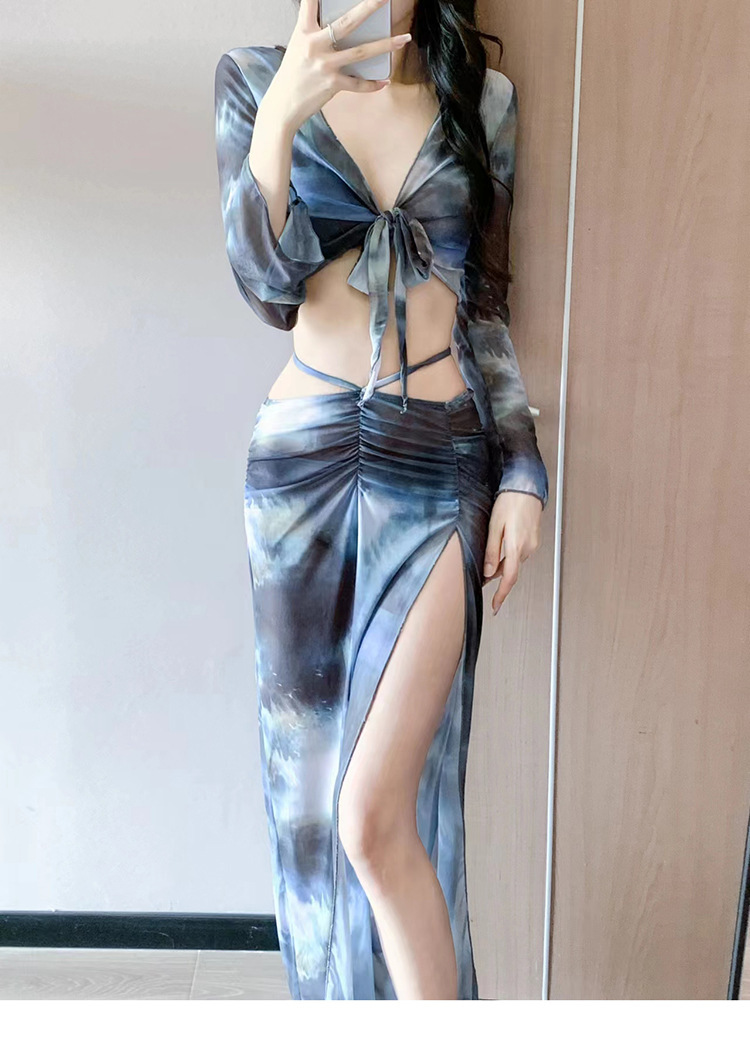 비키니 수영복 여성의 새로운 분할 4 피스 롱 원피스 섹시한 유럽과 미국의 슬림 핏 슬리밍 온천 휴가