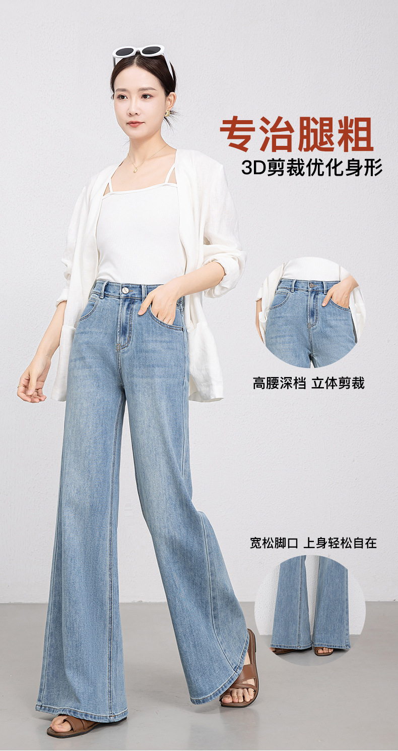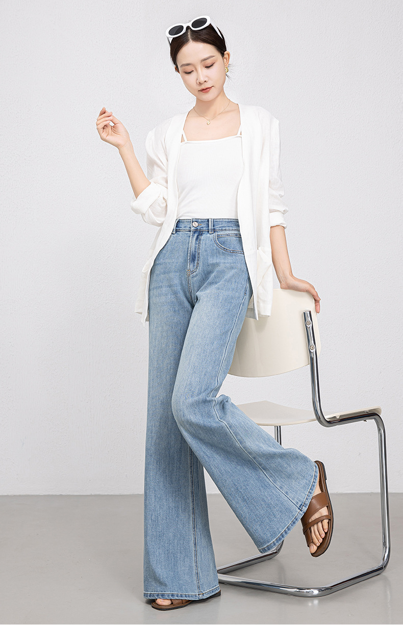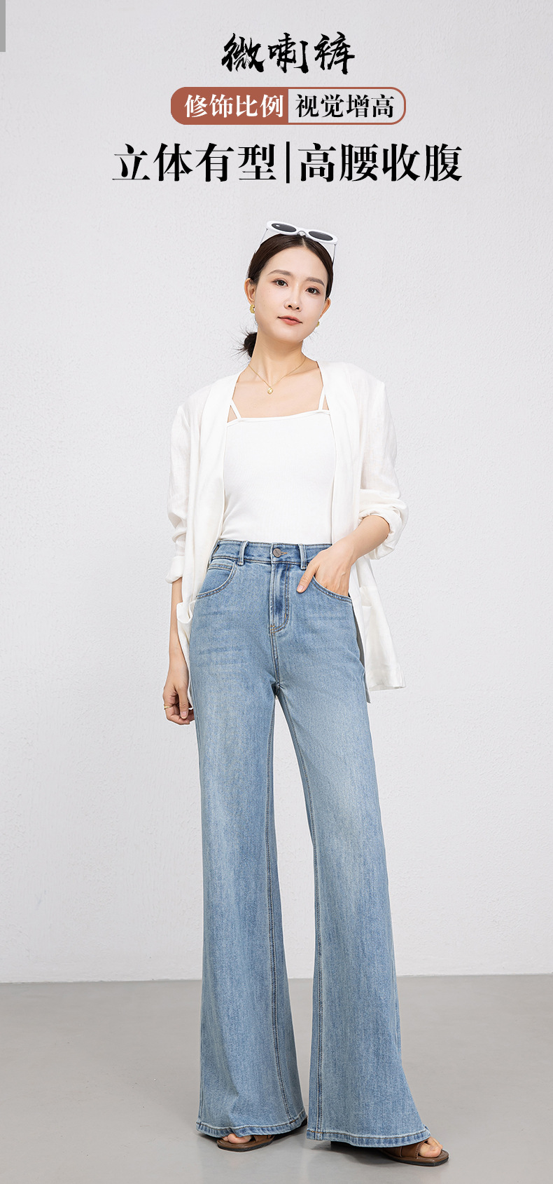 가볍고 통기성 마이크로 청바지 여성의 2025 여름 새로운 높은 허리 처진 뿔 바지 8180스토어 가기