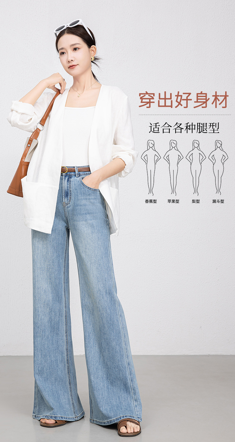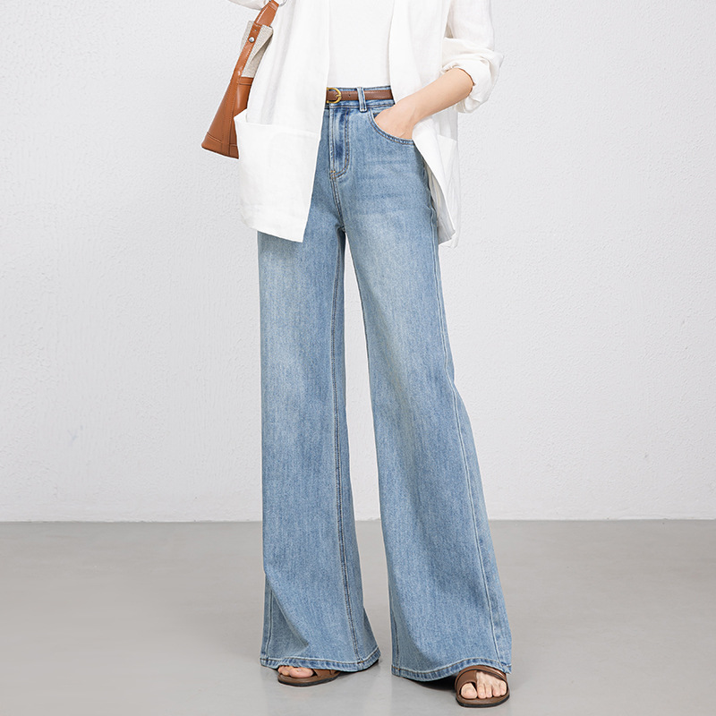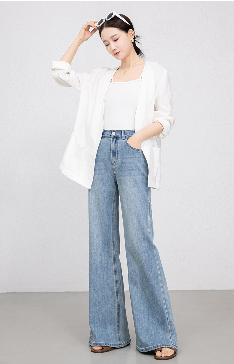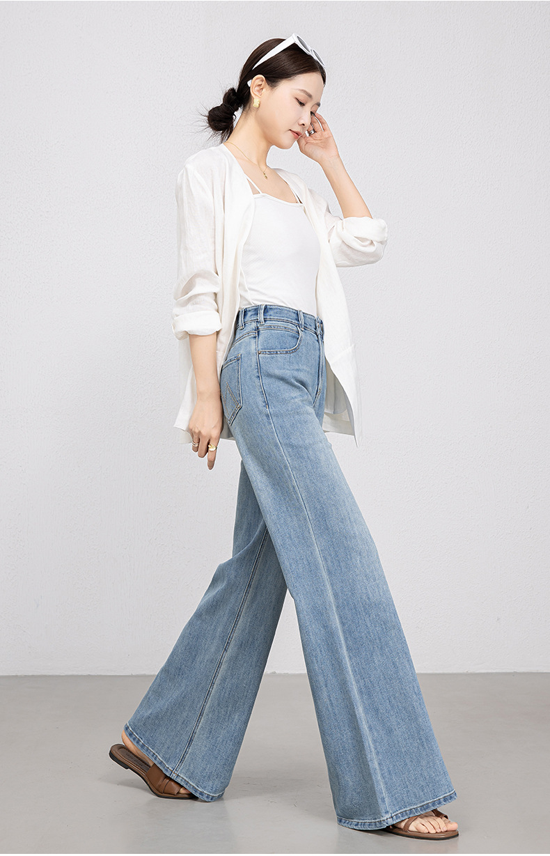가볍고 통기성 마이크로 청바지 여성의 2025 여름 새로운 높은 허리 처진 뿔 바지 8180스토어 가기
